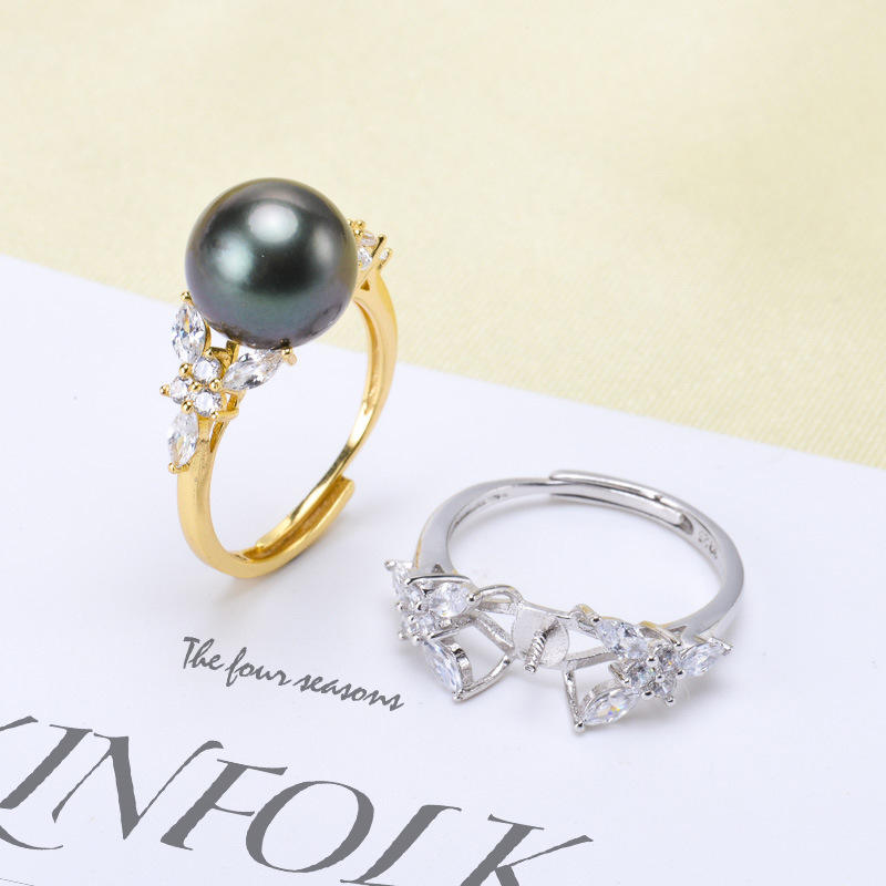 แหวนเงินแท้ S925 สำหรับประดับมุก DIY แฟชั่นสำหรับผู้หญิง พร้อมลูกปัดขนาด 8-10 มม. และฐานเปล่า รุ่น 10331