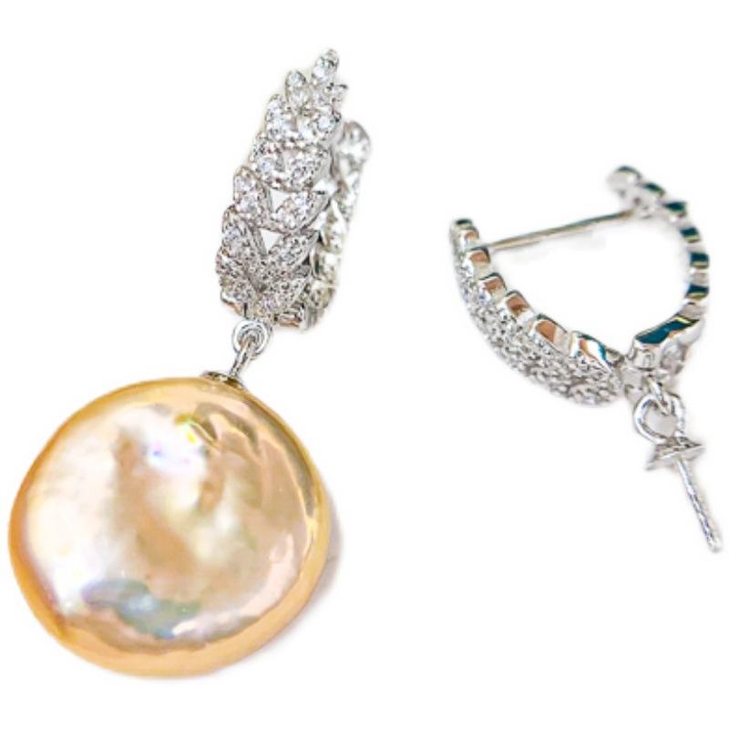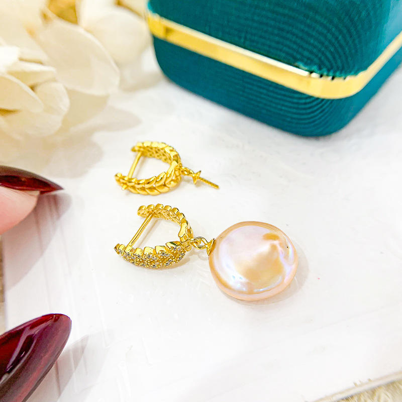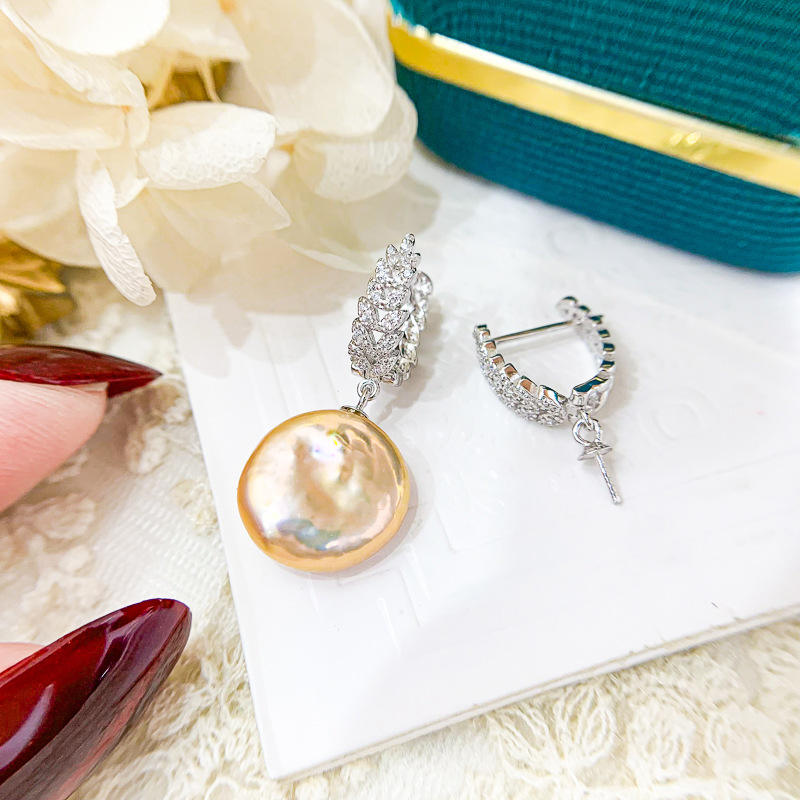 ตัวเรือนต่างหูเงินแท้ S925 สำหรับทำต่างหูมุก DIY รูปใบไม้ พร้อมตัวล็อคแบบห่วง รองรับมุกทรงกลมขนาด 8-13 มม. รุ่น 21181 อุปกรณ์เสริม