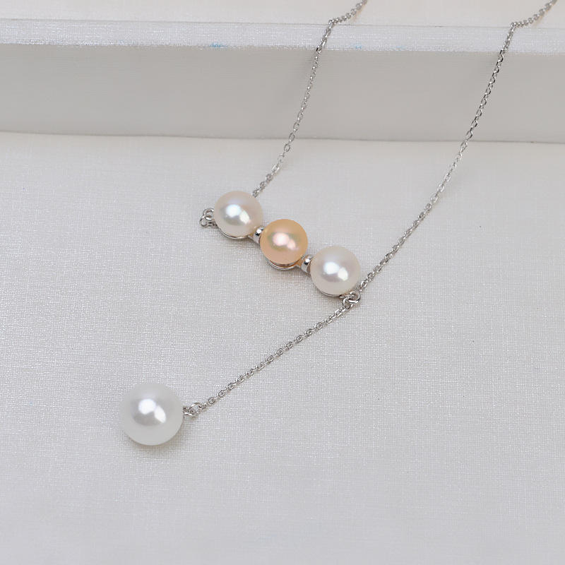 ชุดสร้อยคอไข่มุก DIY เงินแท้ S925 พร้อมจี้ไข่มุก 8-9 มม. พร้อมสร้อยคอแบบคลาวิเคิล 1601 และอุปกรณ์ฐานเปล่าสำหรับใส่ไข่มุก 1601