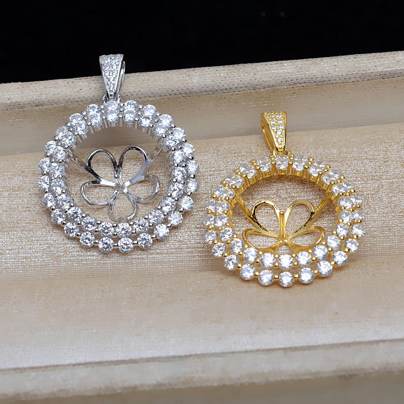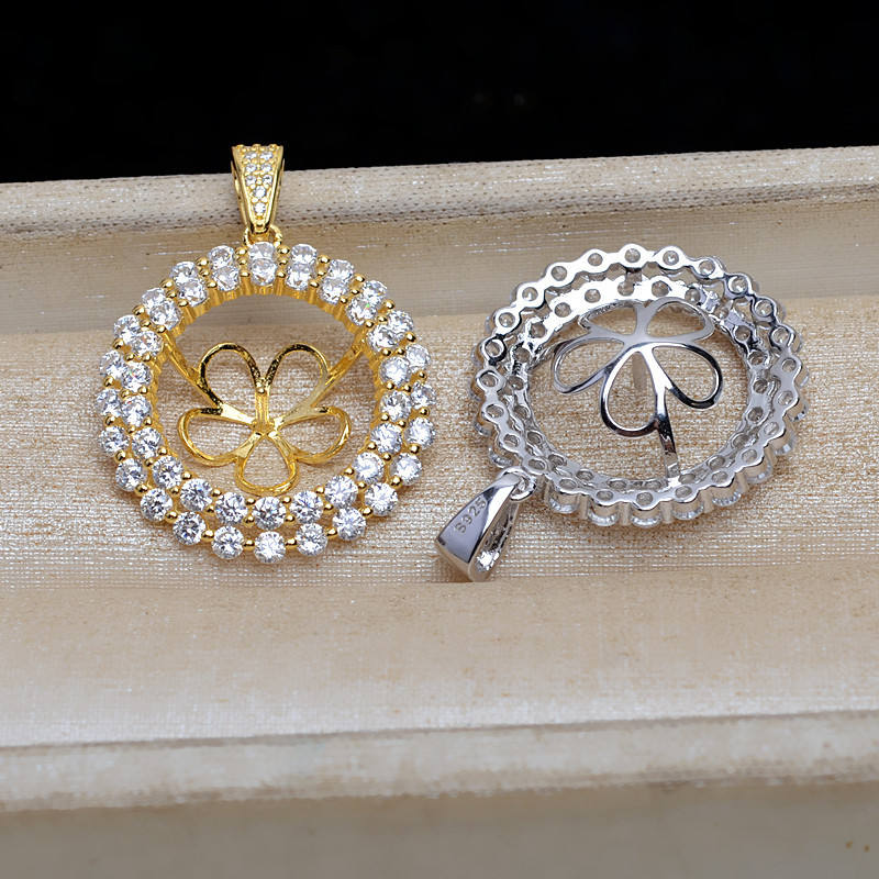 S925 Silver DIY Pearl Pendant with Concealer Bottom Holder 15-16 Accessories Empty Semi-Finished Product for Charms