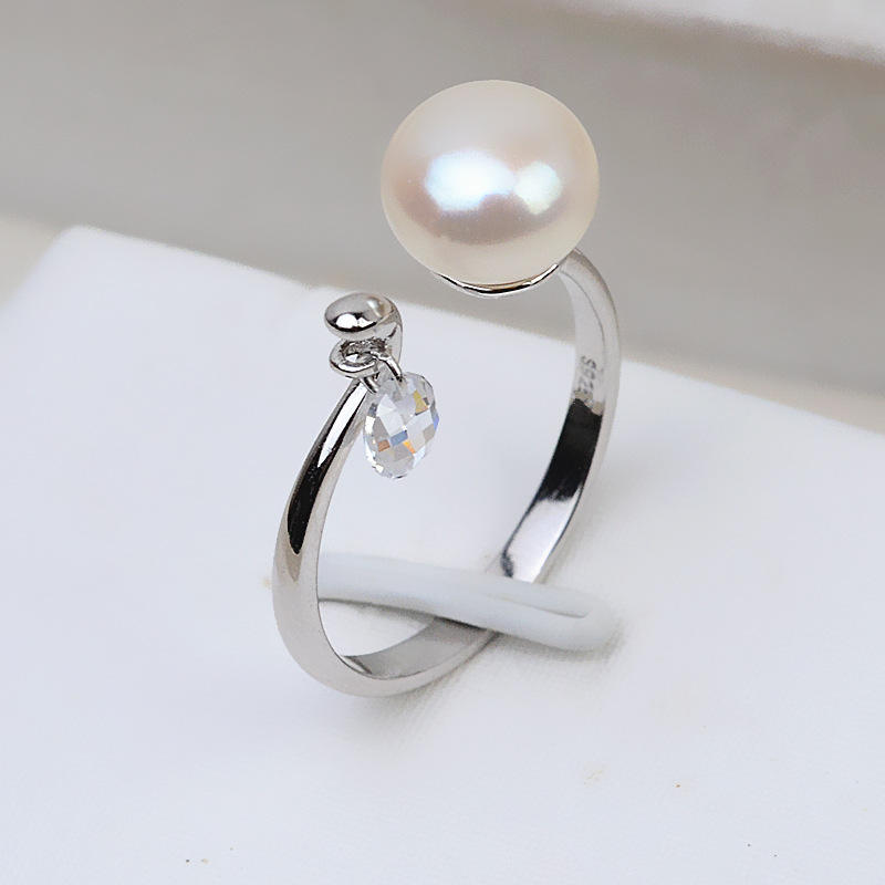 อุปกรณ์ทำแหวนไข่มุกเงินแท้ S925 แบบเปิด ปรับขนาดได้ 5-8 มม. แหวนเจ้าหญิง ตัวเรือนเปล่า & ตัวเรือนกึ่งสำเร็จรูป สำหรับฝังอัญมณี 2730