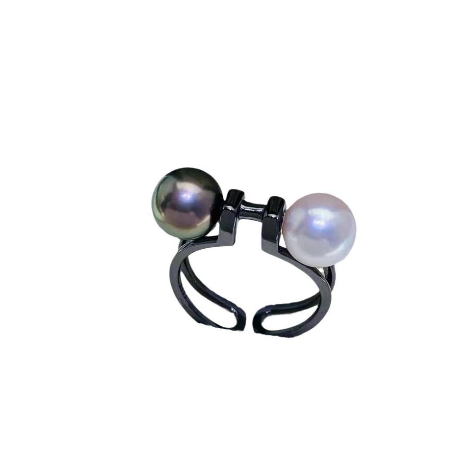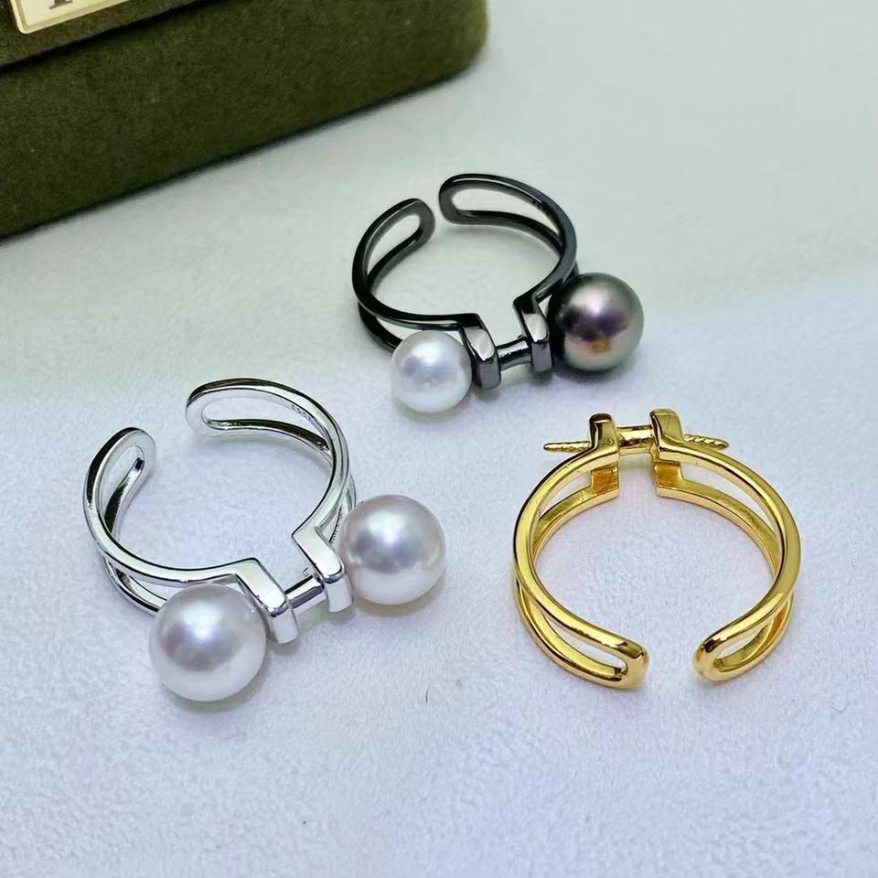 อุปกรณ์ทำแหวนไข่มุกเงินแท้ S925 สำหรับผู้หญิง ลูกปัดกลมขนาด 7-9 มม. บนฐาน 10154 แบบสองชั้น