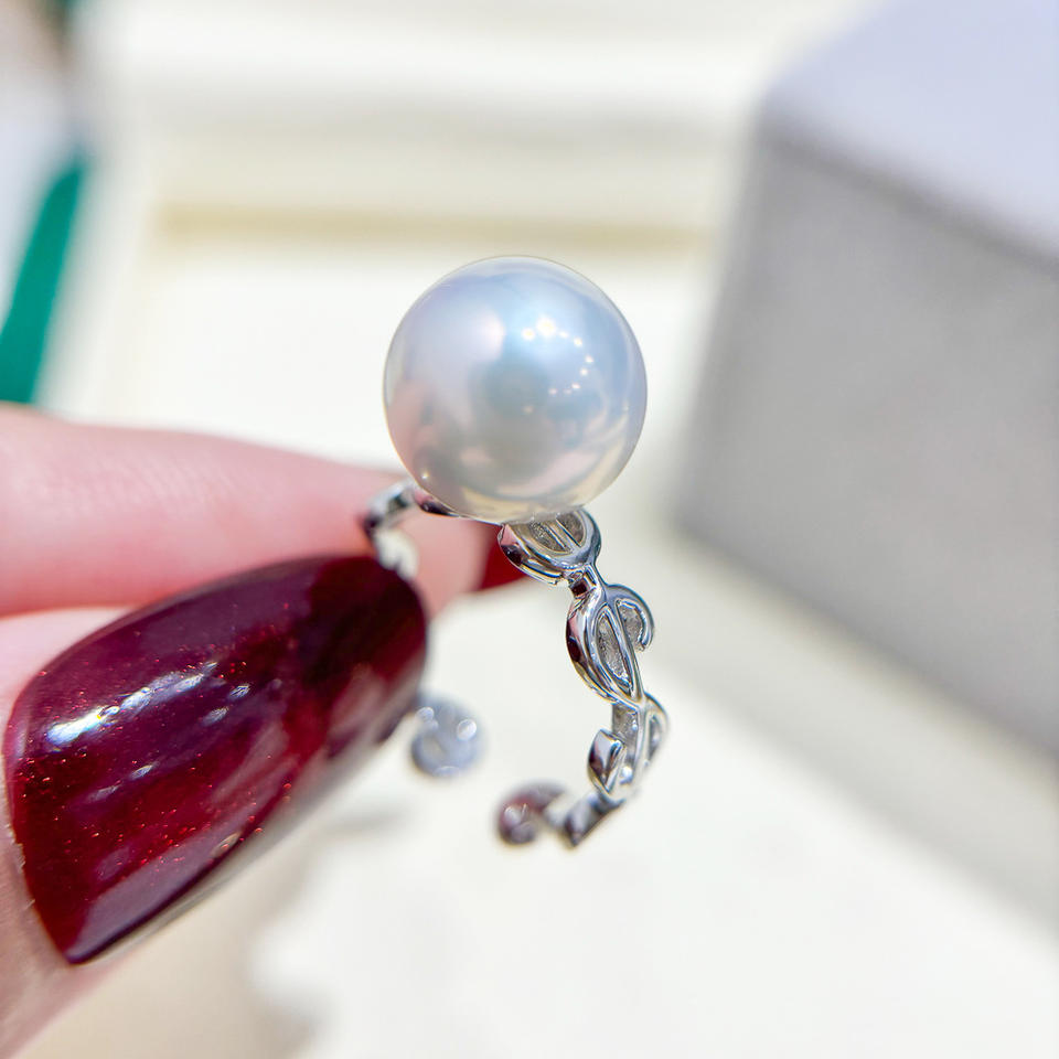ขาตั้งแหวนเงินแท้ S925 สำหรับทำแหวนไข่มุก DIY เครื่องประดับแฟชั่น สำหรับลูกปัดทรงกลมขนาด 9-13 มม. รุ่น 10457 อุปกรณ์เสริม