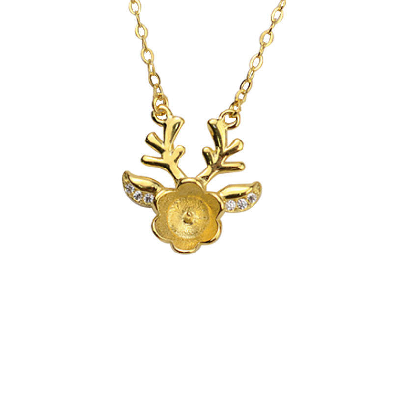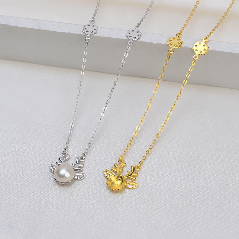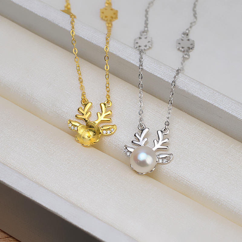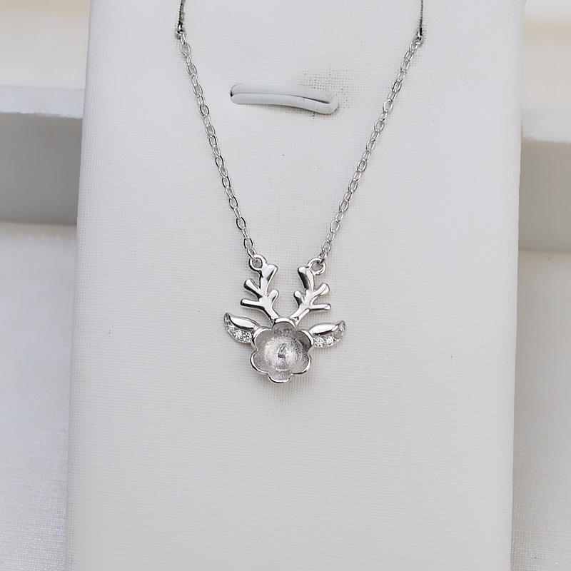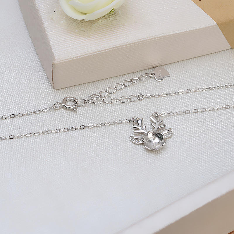 จี้เขากวางเงินแท้ S925 ประดับมุก 7-8 มม. อุปกรณ์ทำเครื่องประดับ DIY สร้อยคอแบบปรับแต่งได้สำหรับผู้หญิง งานกึ่งสำเร็จรูป 1461