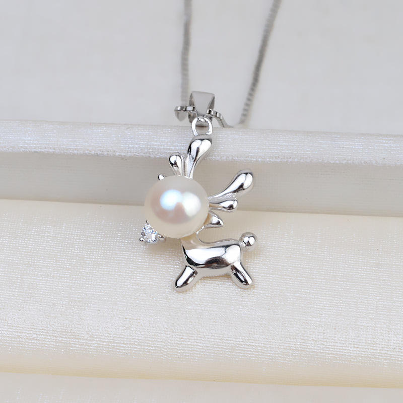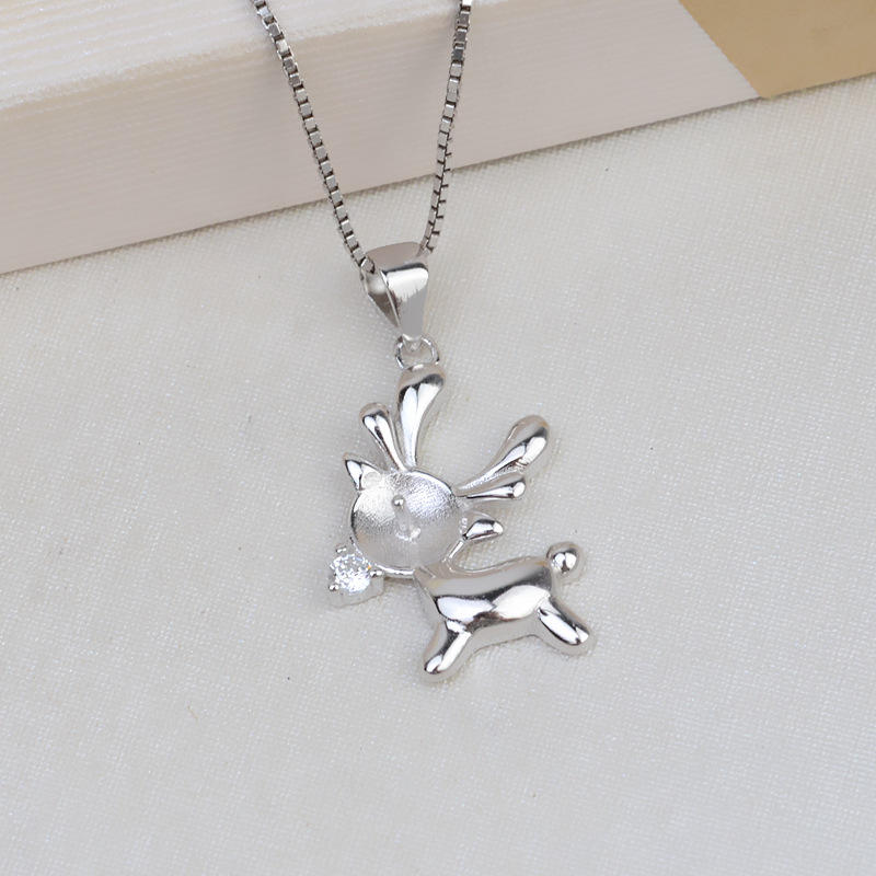 จี้เขากวางเงินแท้ S925 ประดับมุก 8-9 มม. สำหรับผู้หญิง อุปกรณ์เสริมสำหรับงาน DIY ทำเครื่องประดับ จี้ติดผม อะไหล่เครื่องประดับ-1792