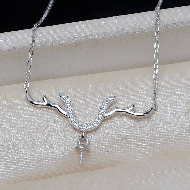 จี้เงินแท้ S925 รูปเขากวาง ดีไซน์สดใส รูปทรงสัตว์ สำหรับทำเครื่องประดับเงิน DIY พร้อมอุปกรณ์ตกแต่งมุก 8-13 เม็ด สร้อยคอ 3912