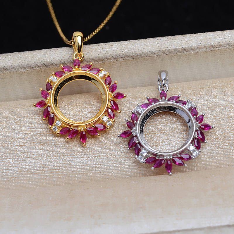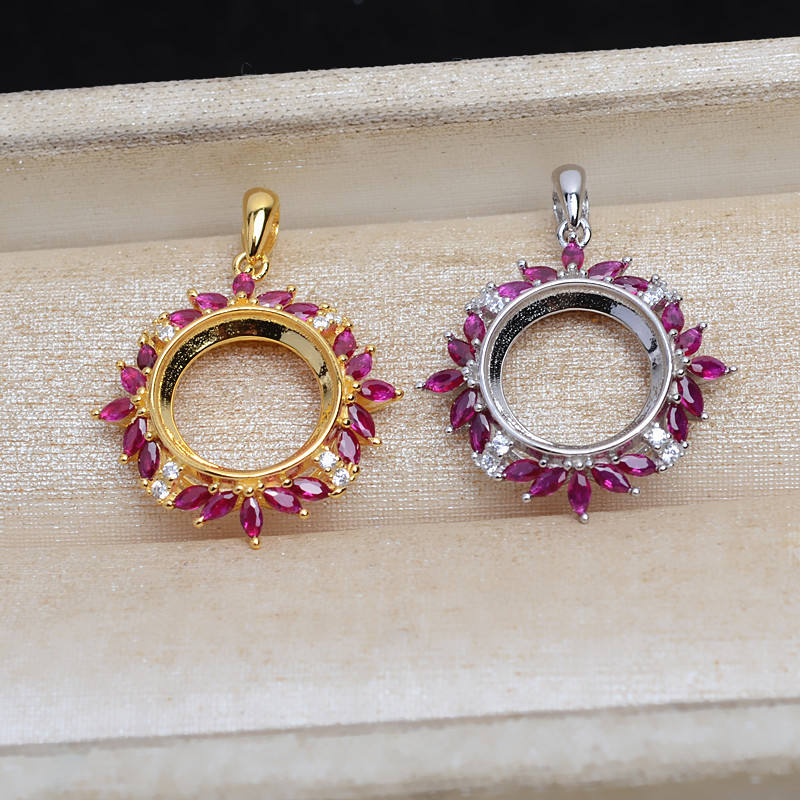 เงินแท้ S925 ประดับทับทิมสีชมพูทรงมาร์คีส์ ขนาด 11.7 มม. พร้อมถาดเปล่าสำหรับงานกึ่งสำเร็จรูป อัญมณีแร่ธาตุ JG5315