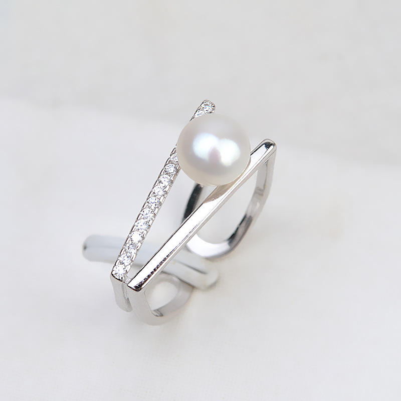 แหวนเงินแท้ S925 แบบวงคู่ ดีไซน์ทันสมัย ปากแหวนเปิด สำหรับทำเครื่องประดับมุก DIY อุปกรณ์เสริมเรียบง่าย สไตล์มินิมอล ฐานเปล่าสำหรับฝังมุก 170