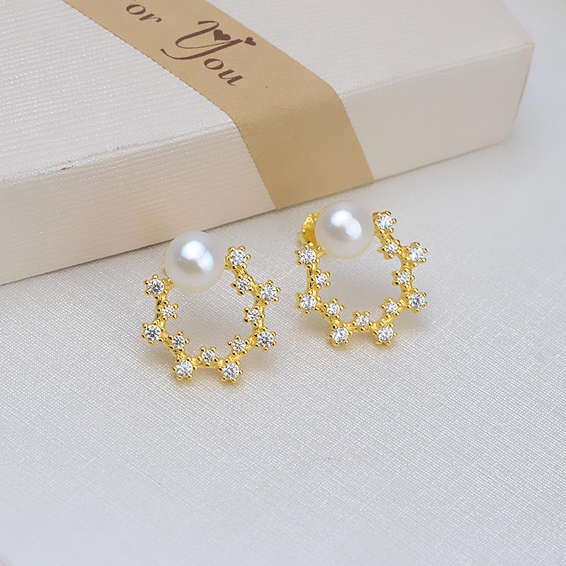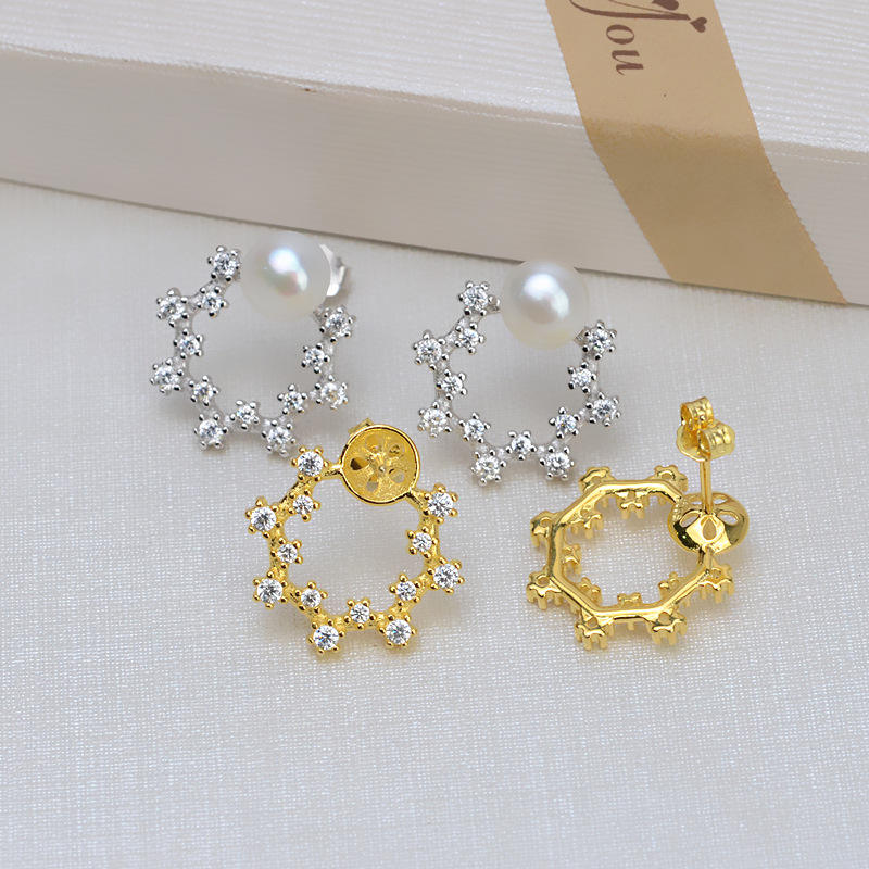 เครื่องประดับหูเงินแท้ S925 รุ่น JG5335 ต่างหูแบบติดหูทรงบาโรก ประดับมุก 9-13 เม็ด รูปทรงหยดน้ำ สำหรับงาน DIY พร้อมเคลือบเงา