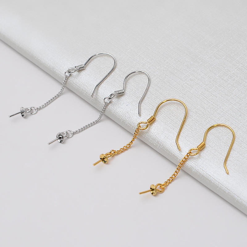 ตะขอเกี่ยวหูเงินแท้ S925 แบบเรียบง่าย ต่างหูผู้หญิง ประดับมุก DIY อุปกรณ์ทำเครื่องประดับ ถาดใส่ส่วนประกอบกึ่งสำเร็จรูป
