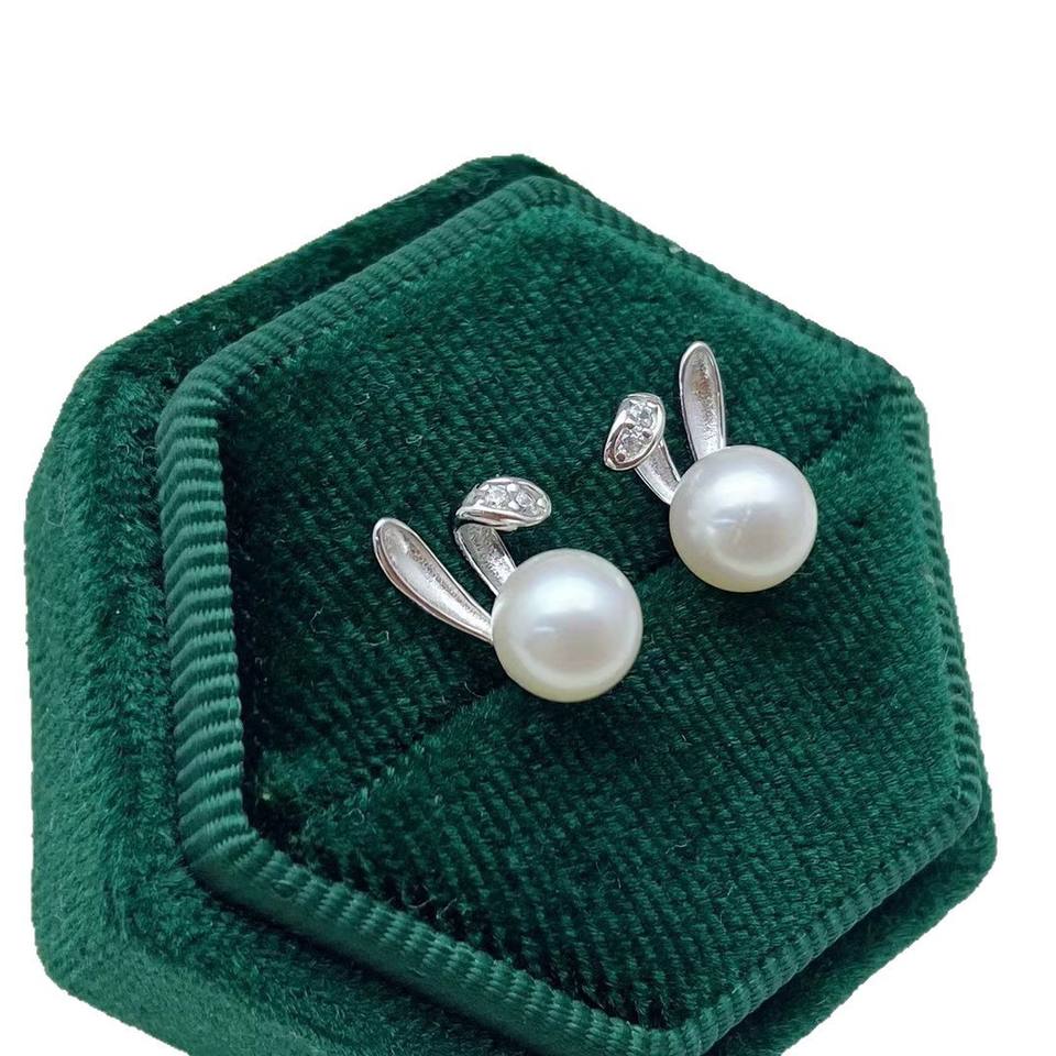 ต่างหูเงินแท้ S925 ทรงกลมเล็ก 5 มม. สไตล์อ่อนเยาว์และสง่างาม ต่างหูรูปหูกระต่าย ต่างหูมุกสำหรับสาวๆ