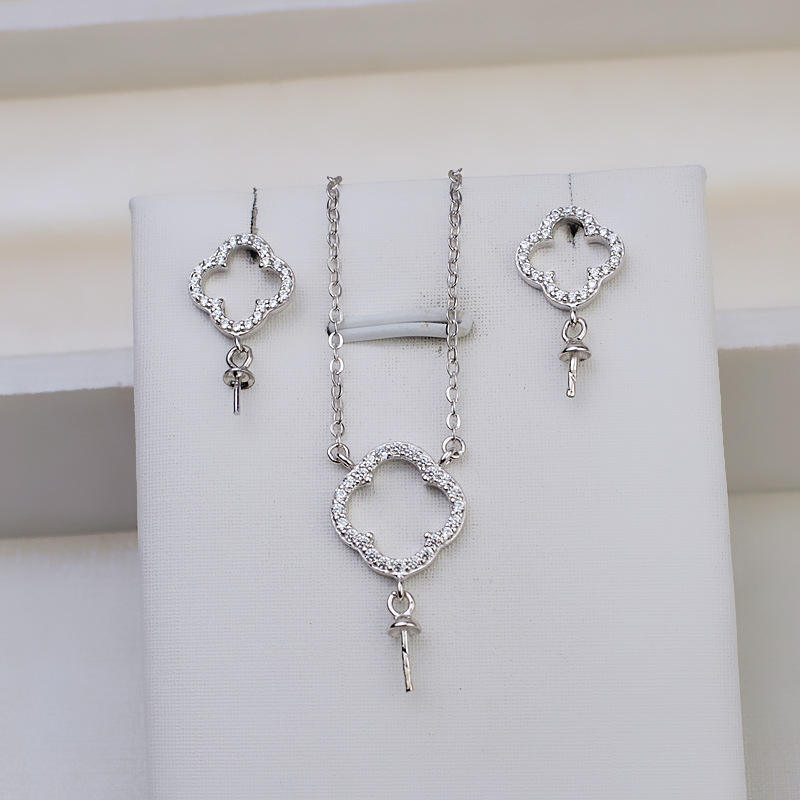 ชุดเครื่องประดับเงินแท้ S925 ต่างหูแบบหมุดและจี้รูปใบโคลเวอร์ พร้อมสร้อยคอ DIY ประดับมุก สำหรับผู้หญิง แฟชั่น รุ่น 1298
