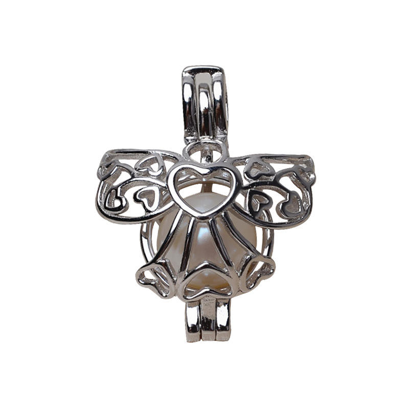 จี้เงินแท้ S925 สไตล์ยุโรป-อเมริกา รูปนางฟ้า สำหรับทำสร้อยคอ DIY พร้อมตัวเรือนเปล่าสำหรับใส่ไข่มุกไร้ตา ขนาด 7-8 มม.
