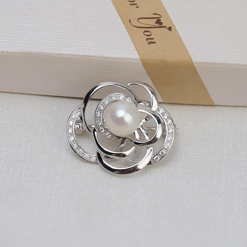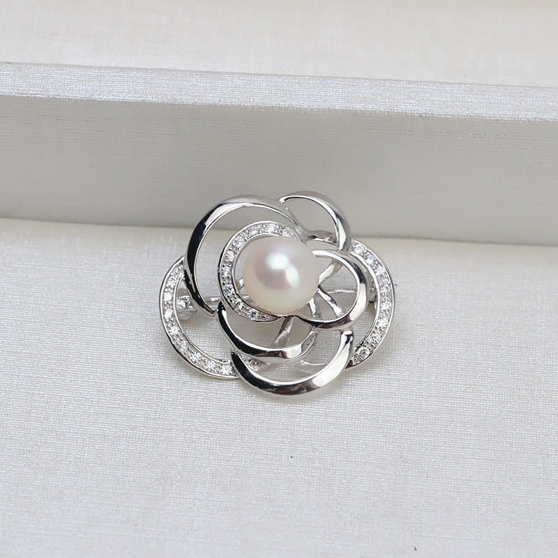เข็มกลัดเงินแท้ S925 รูปดอกไม้ ประดับมุกเปล่า สำหรับงาน DIY เครื่องประดับส่วนตัว ดีไซน์หรูหรา