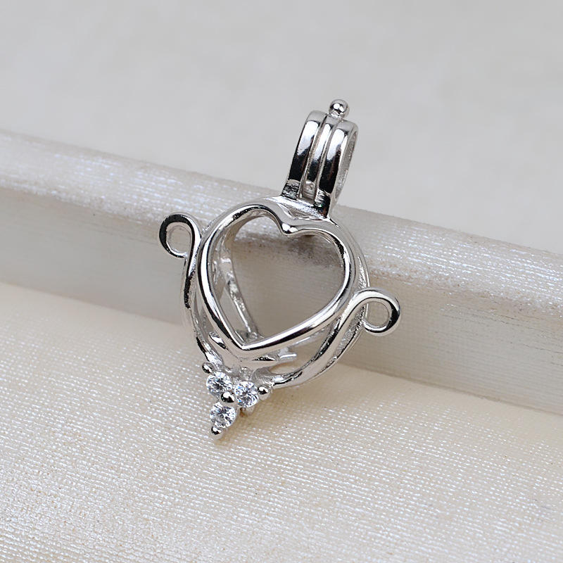 จี้รูปหัวใจเงินแท้ S925 สำหรับผู้หญิง ประดับมุกไม่เจาะรู 9-10 มม. อุปกรณ์ทำเครื่องประดับ DIY ถาดสีทอง วัสดุหลัก 2787