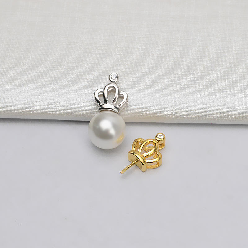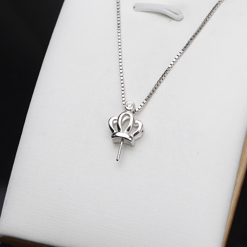 S925 Silver Female Pendant Head Crown Style with DIY Pearl Jewelry Semi-Finished 709 Inlaid Tray Empty for DIY Accessories