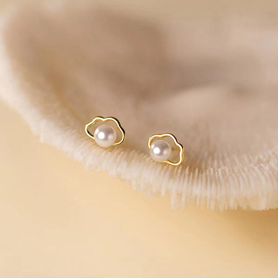 ต่างหูเงินแท้ S925 แบบติดหู ประดับมุก DIY พร้อมถาดเปล่า เครื่องประดับเงินคลาวด์ เข้าชุดกับขนาด 5-6 มม.