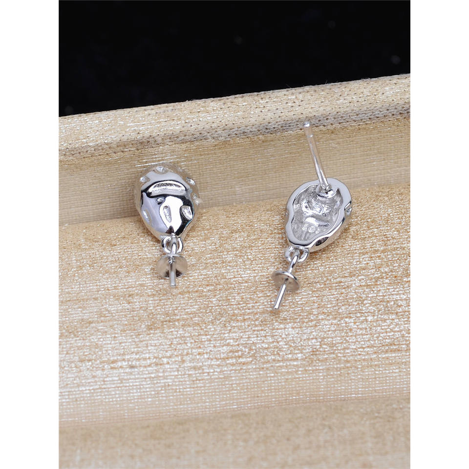 ต่างหูเงินแท้ S925 แบบติดหู ดีไซน์ใบไม้ใหญ่ ประดับมุก 6-7 เม็ด ชุดต่างหูแบบปรับแต่งได้ อุปกรณ์ DIY ถาดเปล่า 1263