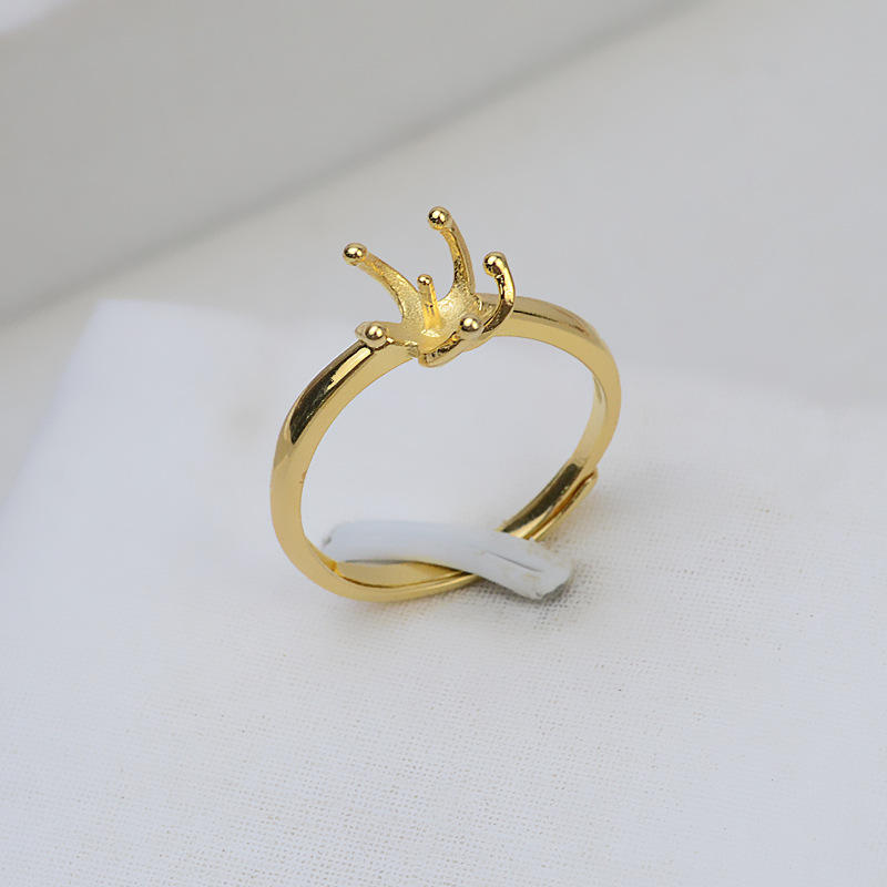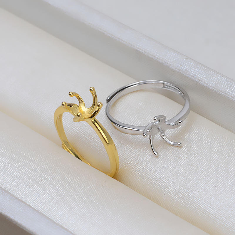 แหวนเงินแท้ S925 แบบห้าก้านเปิด ปรับขนาดได้ 6-7 สำหรับทำเครื่องประดับมุก DIY พร้อมชุบทอง 14k 218 ฐานเปล่า