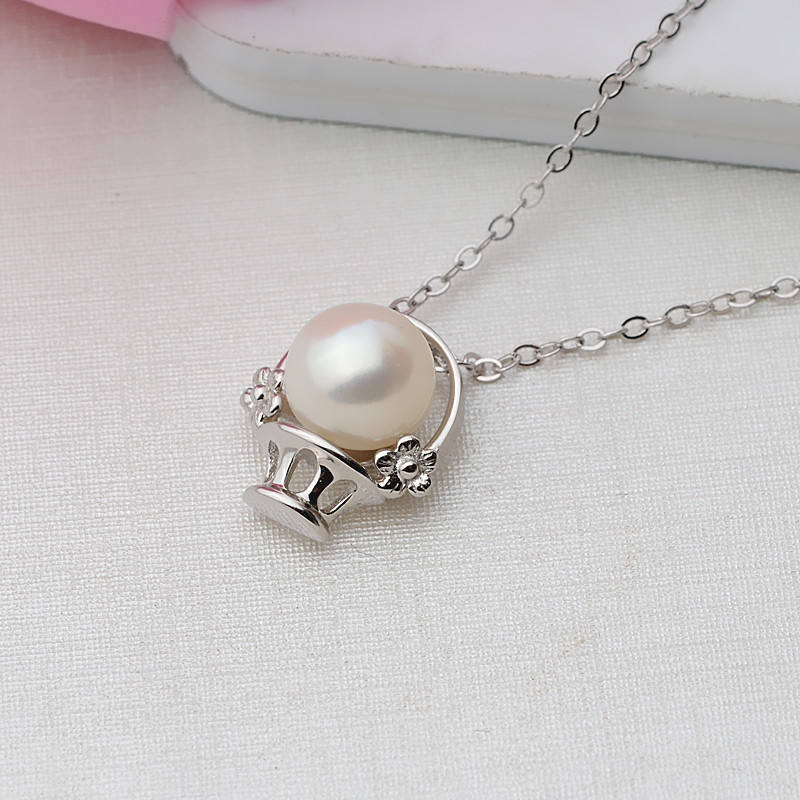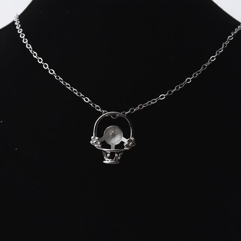 สร้อยคอจี้รูปตะกร้าดอกไม้เงินแท้ S925 สำหรับผู้หญิง อเนกประสงค์ พร้อมไข่มุก 7-8 เม็ด อุปกรณ์ DIY 344 ชุดสร้อยคอคลาวิเคิล