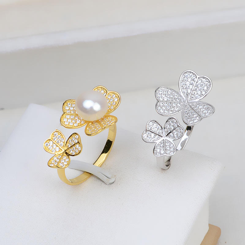 เวนชี่ S925 แหวนเงินรูปดอกไม้แบบปรับได้ ประดับมุก DIY ขนาด 5-6 สไตล์อินเทรนด์ รุ่น 16768