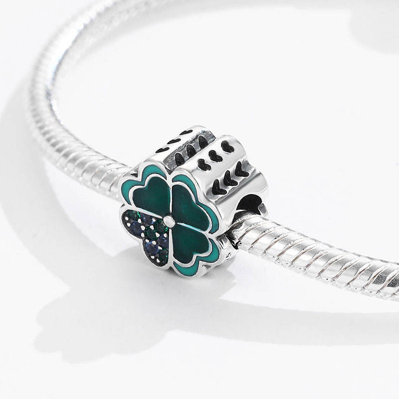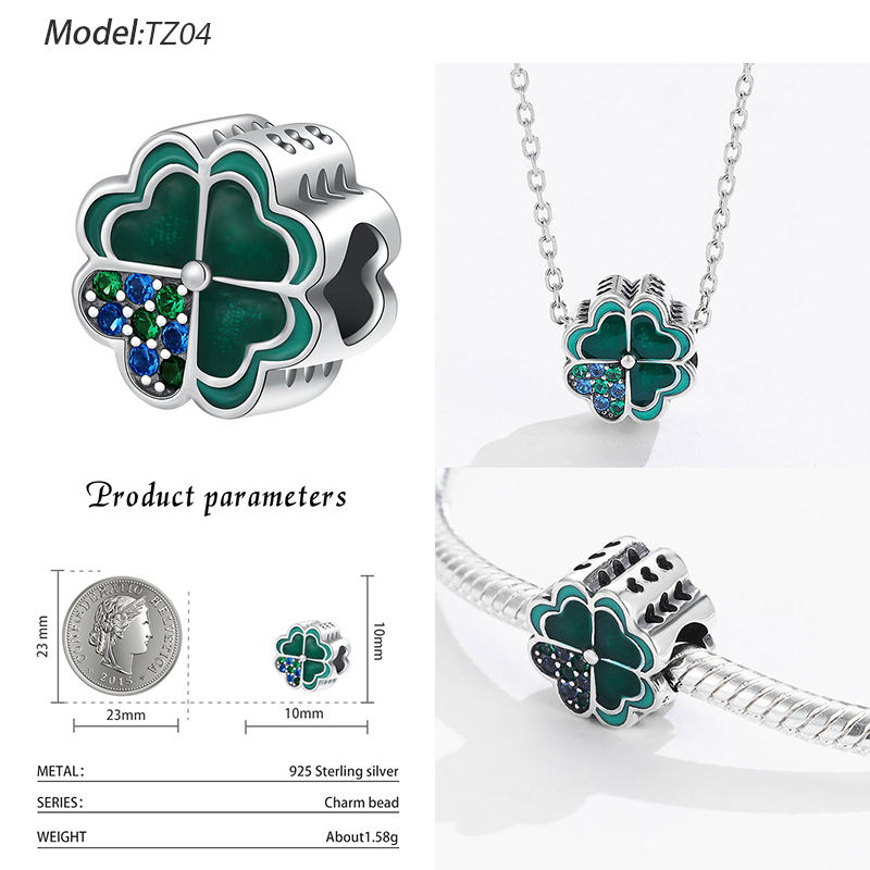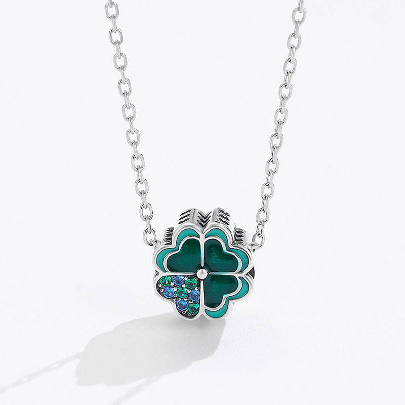 จี้เงินแท้ S925 รูปใบโคลเวอร์สี่แฉก ประดับด้วยเคลือบสีเขียวและเพชรสังเคราะห์สีเขียวอมฟ้า ของขวัญเครื่องประดับนำโชคสำหรับผู้หญิง