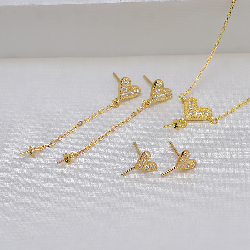 ขาตั้งต่างหูเงินแท้ S925 รูปหัวใจ สำหรับทำเครื่องประดับมุก DIY ขนาด 8-11 มม. รูปหัวใจสีพีช ขาตั้งเปล่า 5817 ชุดเครื่องประดับแฟชั่น