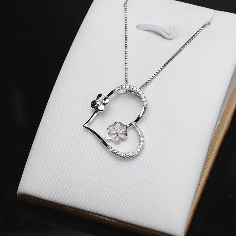 S925 Silver Heart-Shaped Pendant for Women 8-10 Pearl Necklace DIY Accessories Fine Pendants Charms Semi-Finished Empty Tray