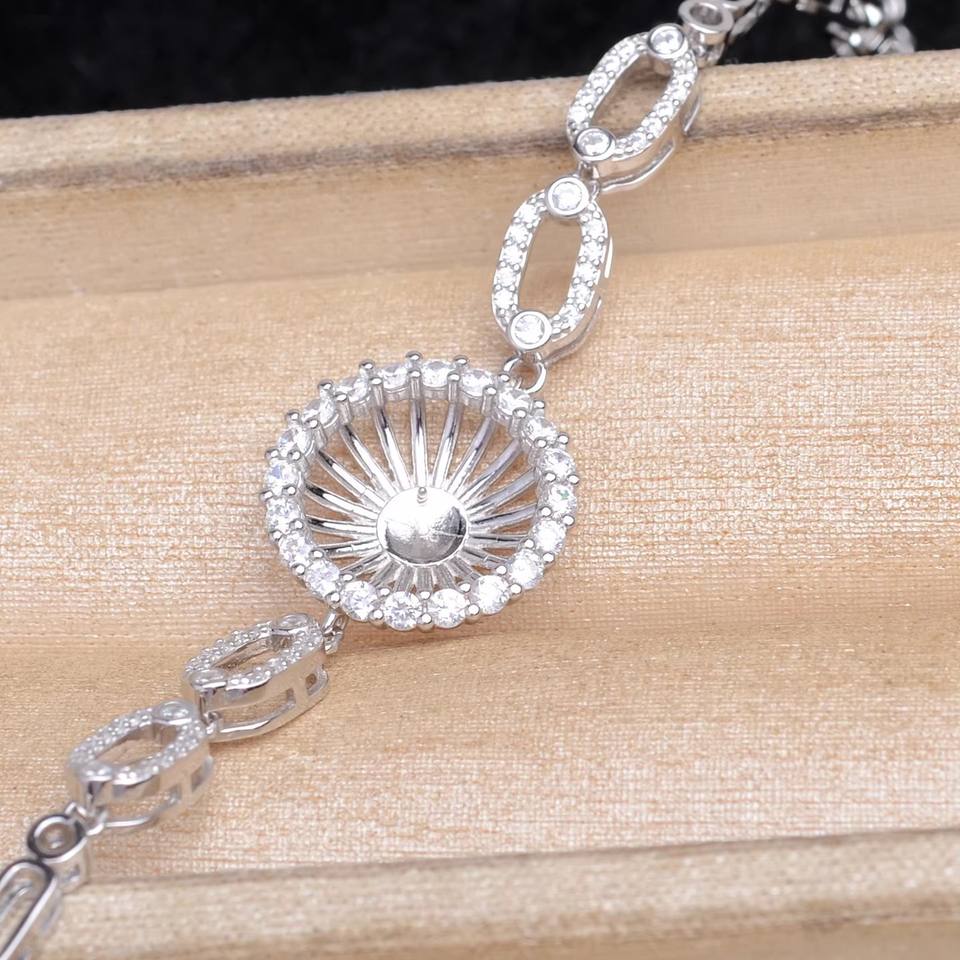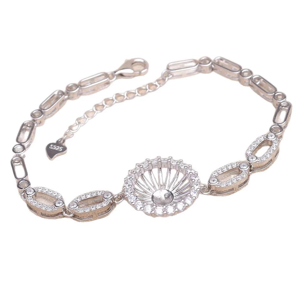 สร้อยข้อมือเงินแท้ S925 ลายดอกทานตะวันแบบกลวง รุ่น A6046 อุปกรณ์เสริม DIY หรูหราสำหรับเครื่องประดับมุก ขนาด 12-13 มม. ตัวเรือนเปล่า