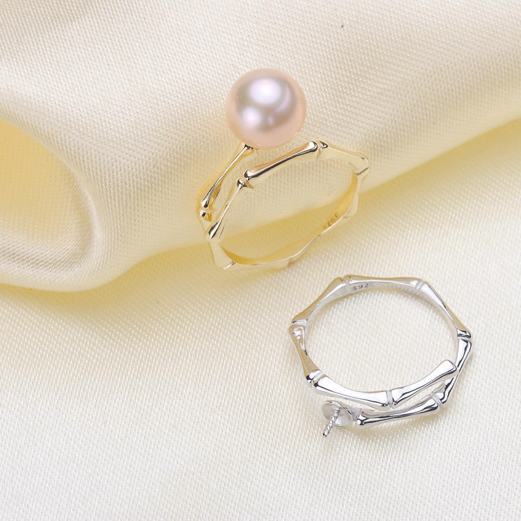 อุปกรณ์ตกแต่งไข่มุก DIY เงินแท้ WENCHI S925 ชุบทองคำขาว ขนาด 7-10 มม. รุ่น 10051 ลูกปัดขนาด 6 มม. 8 มม. สำหรับตกแต่งแหวน ตัวเรือนแหวนเงินเปล่า