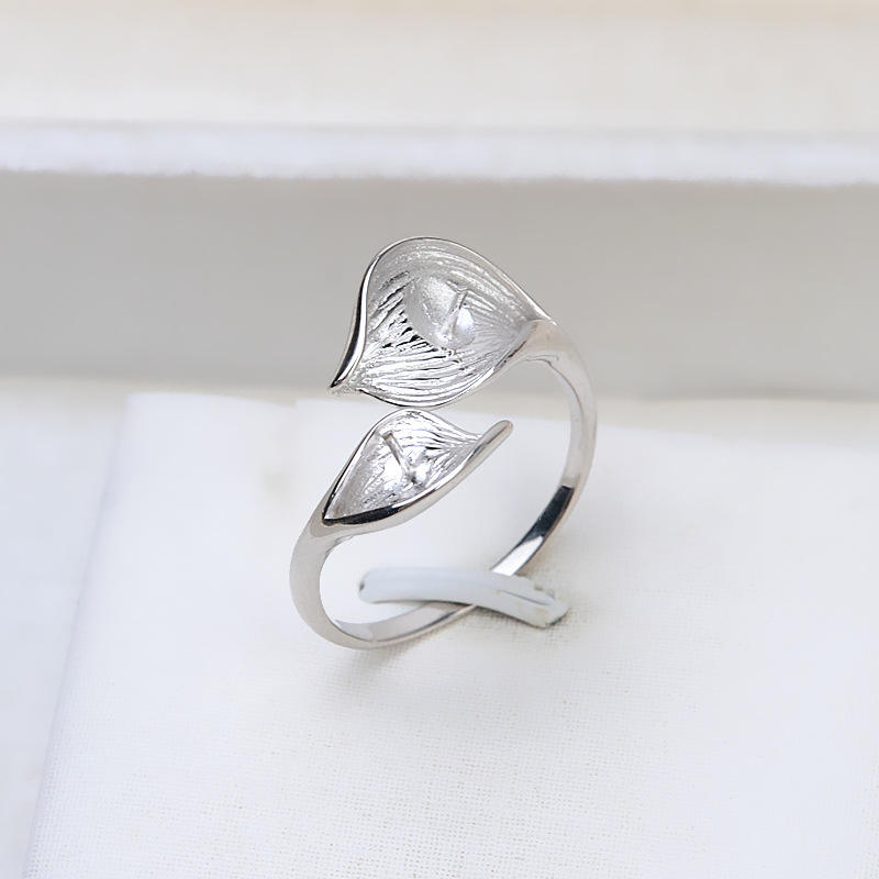 แหวนเงินแท้ S925 ลายใบไม้ แบบเปิด ประดับมุก 23 เม็ด อุปกรณ์ DIY สำหรับงานประดิษฐ์ ถาดเปล่าสำหรับใส่ลูกปัด พร้อมลูกปัด 5-6 เม็ด