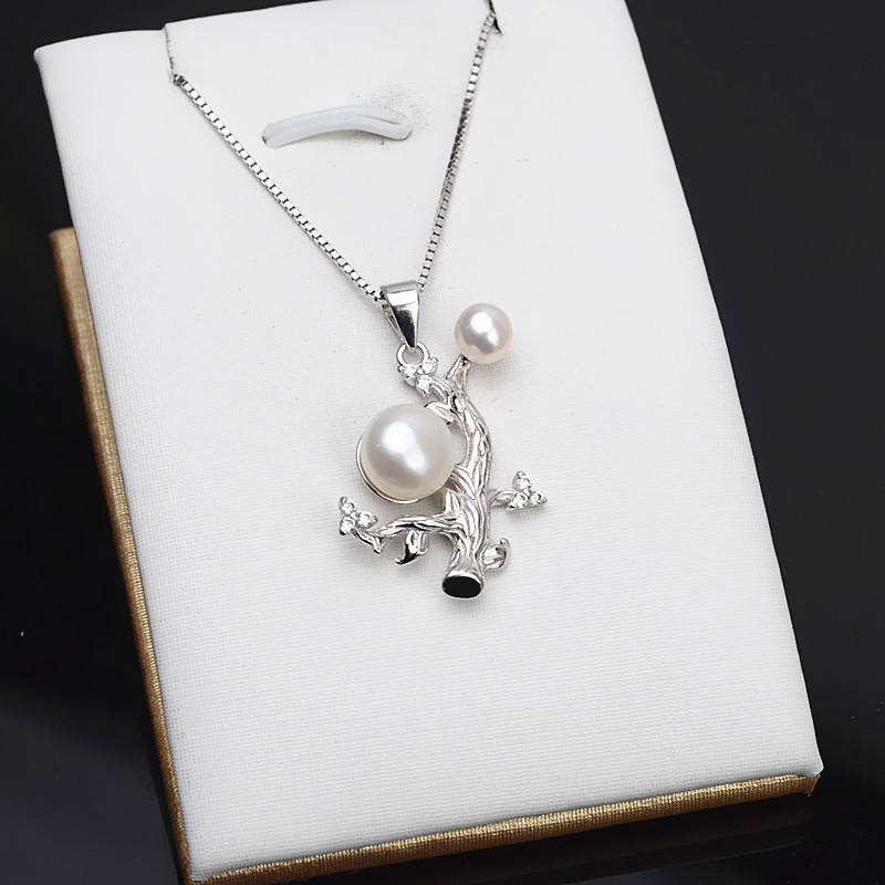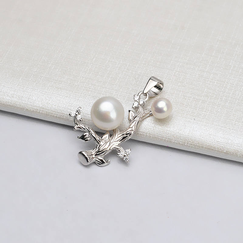 ถาดเปล่าสำหรับทำเครื่องประดับ DIY รูปต้นไม้เล็กประดับมุกคู่ เงินแท้ S925 สำหรับผู้หญิง