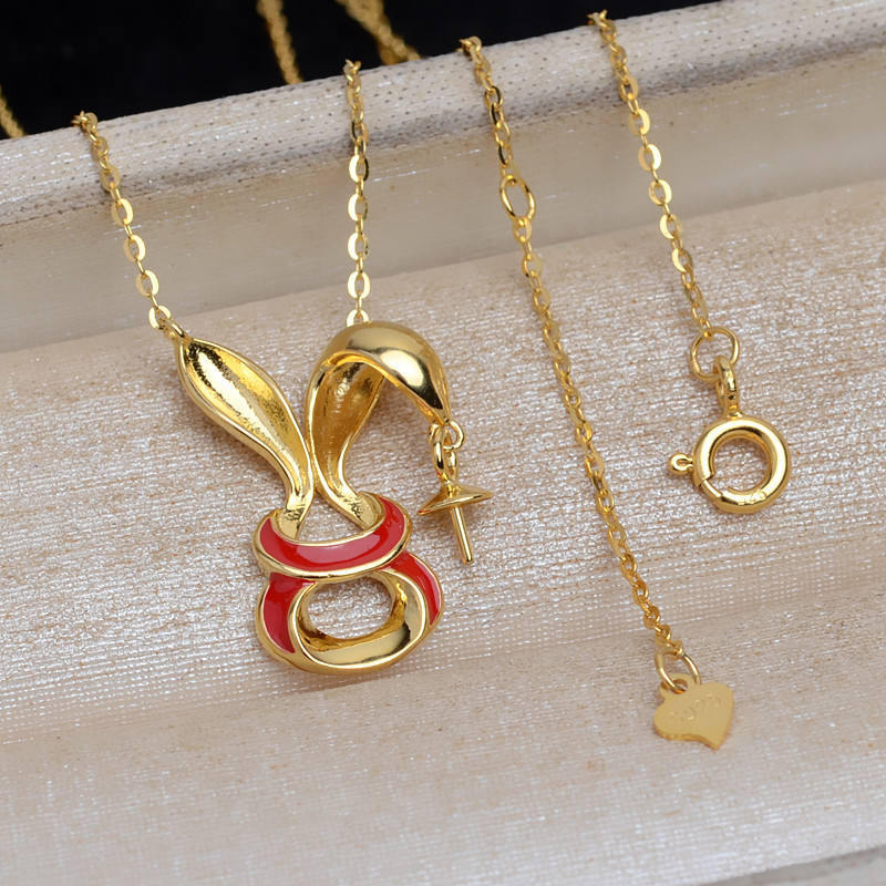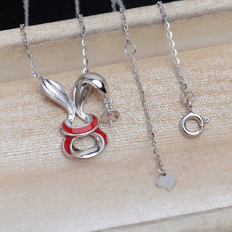 ชุดสร้อยคอเงินแท้ S925 ลายกระต่ายนำโชค พร้อมอุปกรณ์ DIY สำหรับทำสร้อยคอแบบหยดน้ำ สำหรับผู้หญิง ใส่ไข่มุก 6-8 มม. จี้แฟชั่น