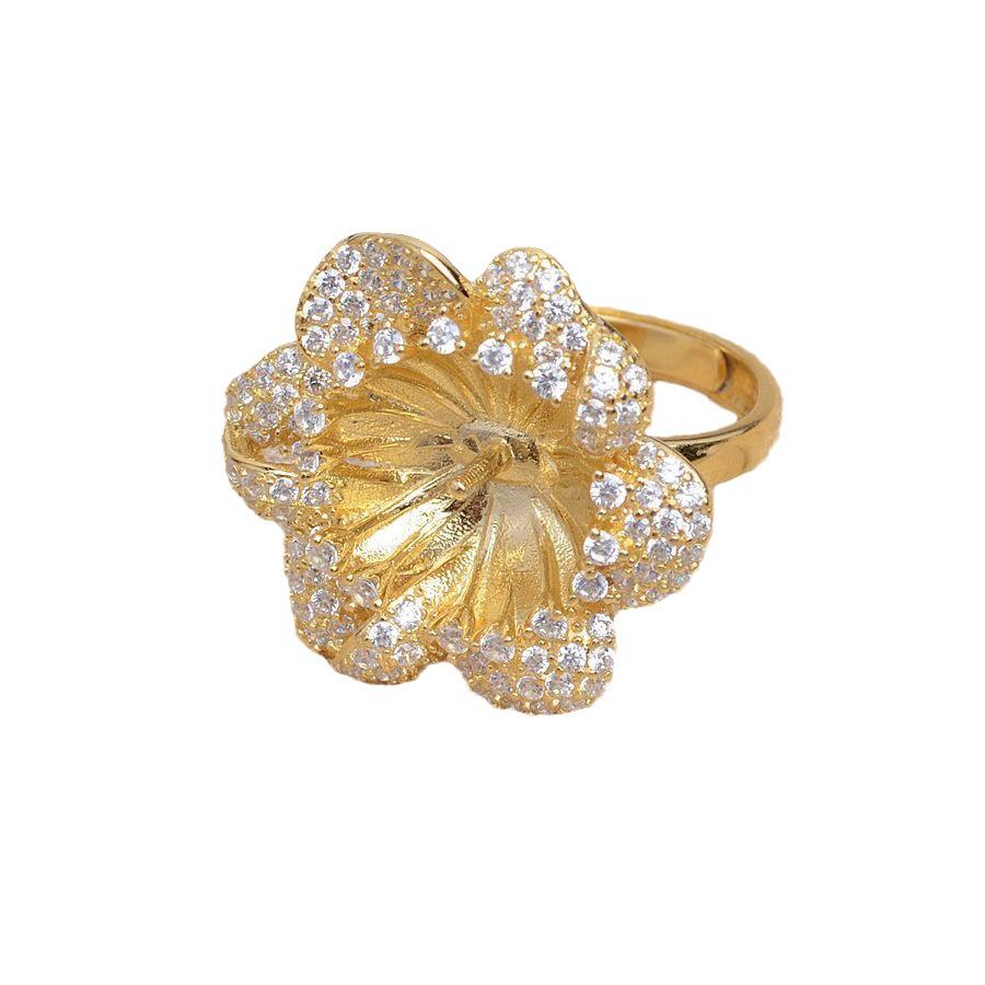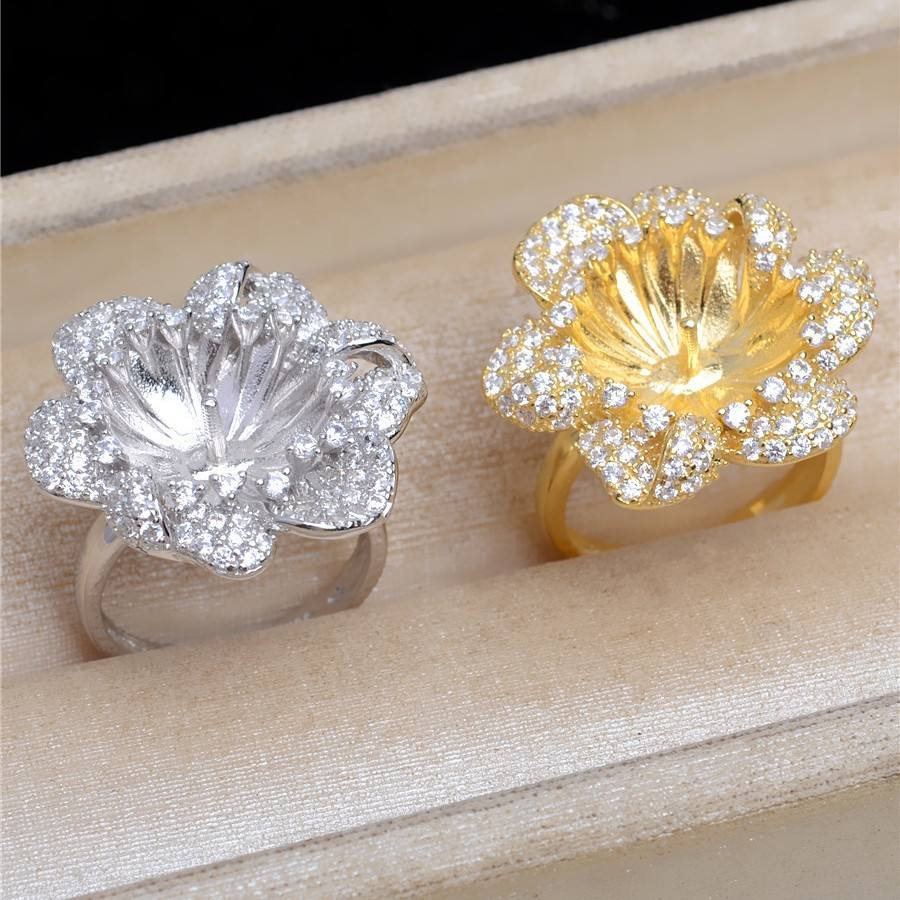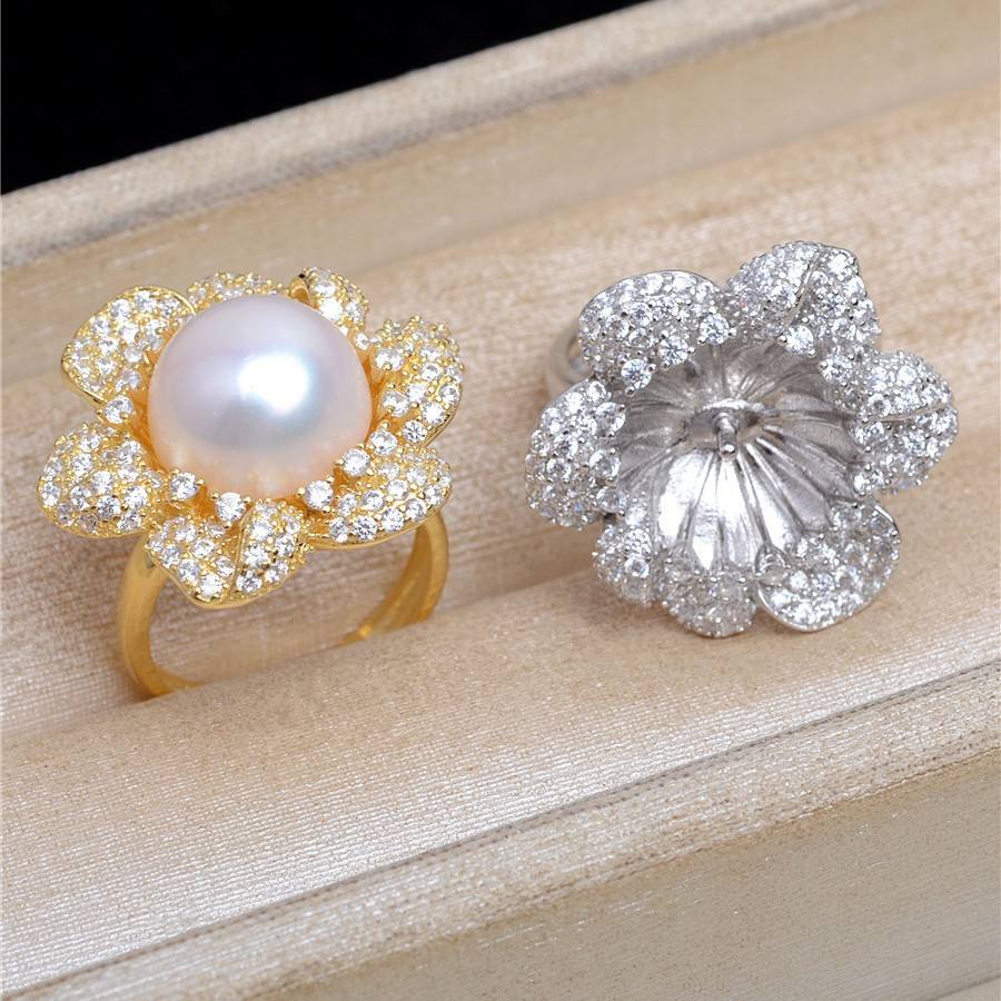 ที่ใส่แหวนเงินแท้ S925 รุ่นหรูหรา JG5457 แบบเปิด DIY สำหรับแหวนแฟนซีของผู้หญิง ขนาด 12-14 พร้อมจี้ไข่มุกและเครื่องประดับ