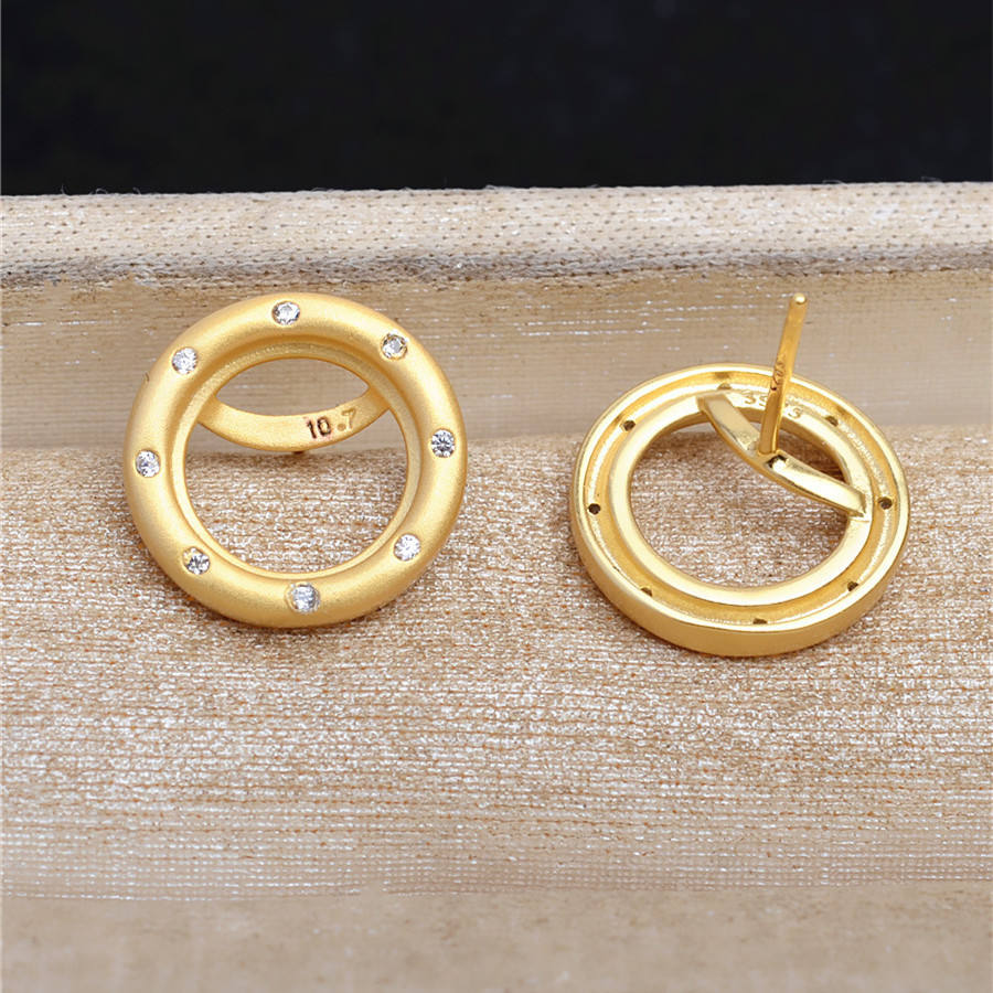 ต่างหูเงินแท้ WENCHI S925 รุ่น Marble Sky Tray ขนาด 10.7 มม. ทรงกลม ขอบด้าน ประดับเพชรทรงดอกทานตะวัน พร้อมอุปกรณ์ประกอบสำหรับทำเครื่องประดับ
