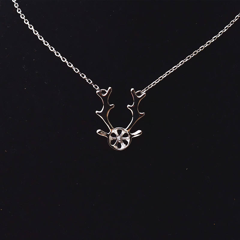 สร้อยคอเงินแท้ S925 สำหรับผู้หญิง ชุดกวางเรนเดียร์คริสต์มาส พร้อมจี้เปล่าสำหรับทำเครื่องประดับมุก DIY อุปกรณ์ตกแต่งสร้อยคอ จี้ห้อยคอแบบละเอียด