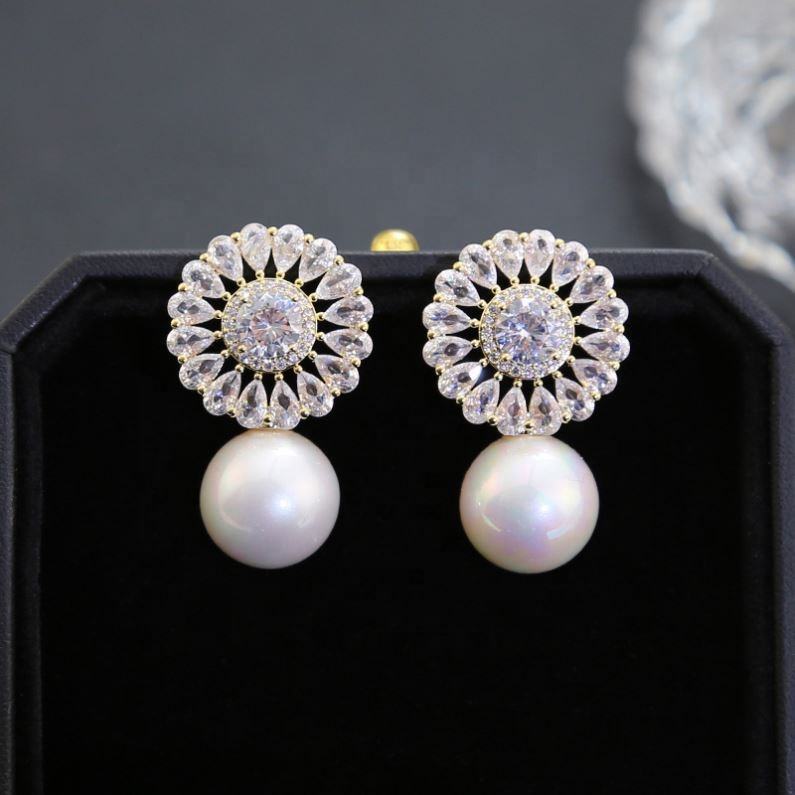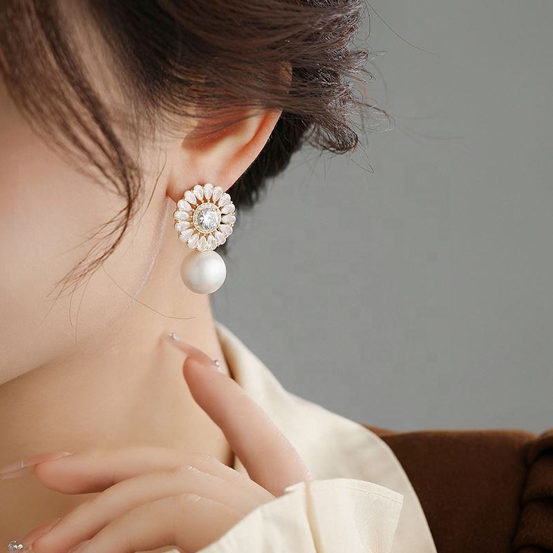 ต่างหูเงินแท้ S925 ประดับเพชรซิร์คอนและมุก ดีไซน์หรูหราทันสมัยสำหรับผู้หญิง ขายส่ง