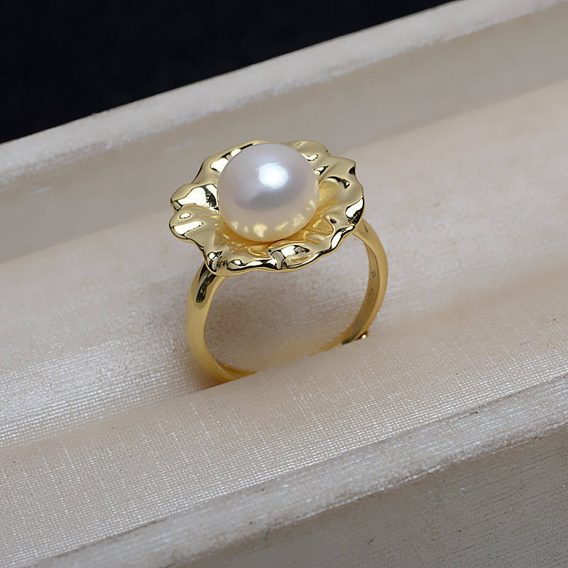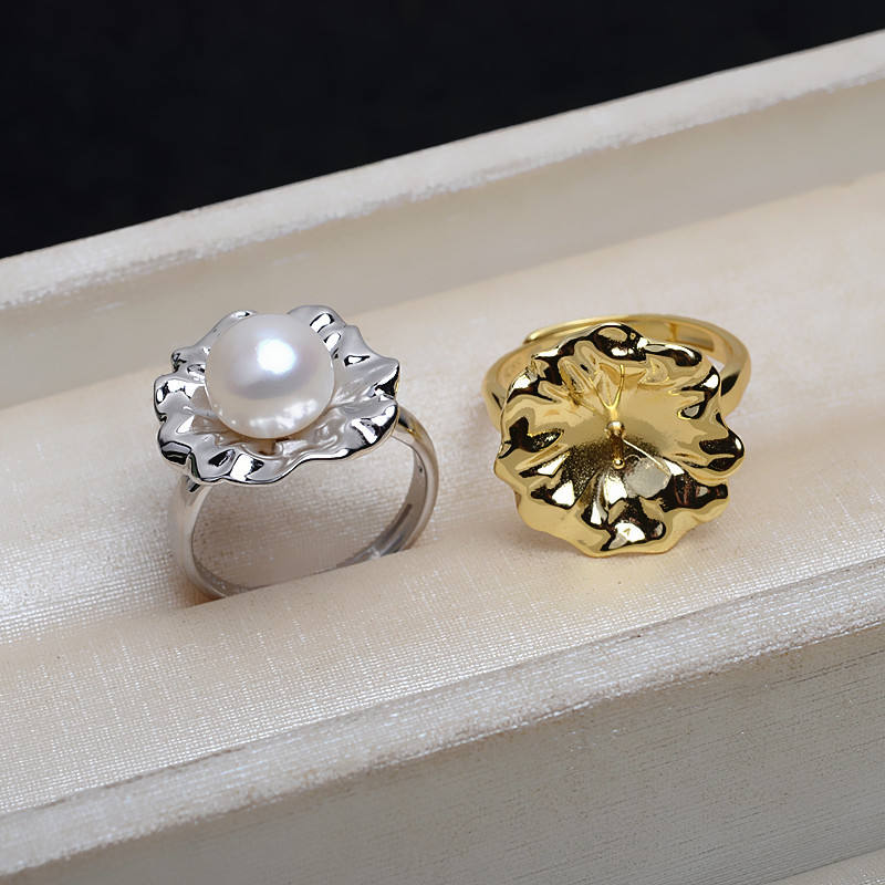 แหวนเงินแท้ S925 แบบเปิด ดีไซน์บาโรก สำหรับทำเครื่องประดับ DIY ฐานเปล่าสำหรับไข่มุกเม็ดใหญ่ ปรับขนาดได้สำหรับผู้หญิง ไซส์ 10-14 อุปกรณ์ทำเครื่องประดับ