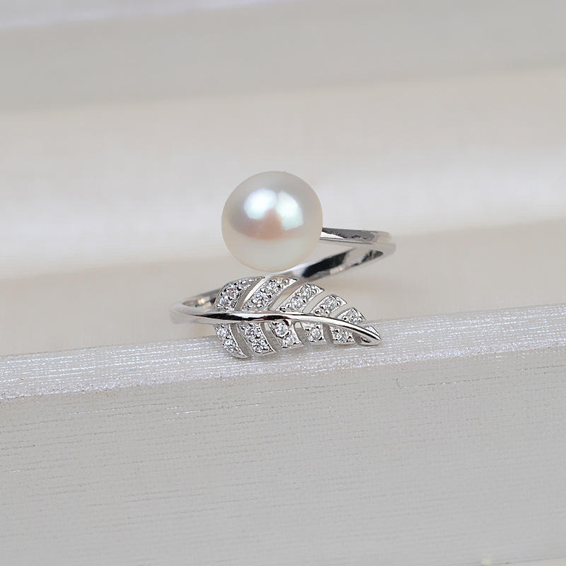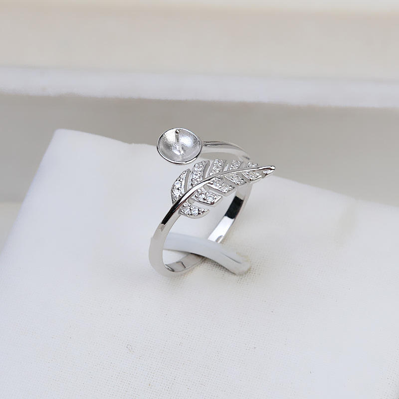 แหวนเงินแท้ S925 แบบเปิดรูปขนนก สำหรับร้อยลูกปัดแบบไม่เจาะรู ทำเครื่องประดับมุก DIY งานแฮนด์เมด ขาตั้งแบบกึ่งสำเร็จรูป