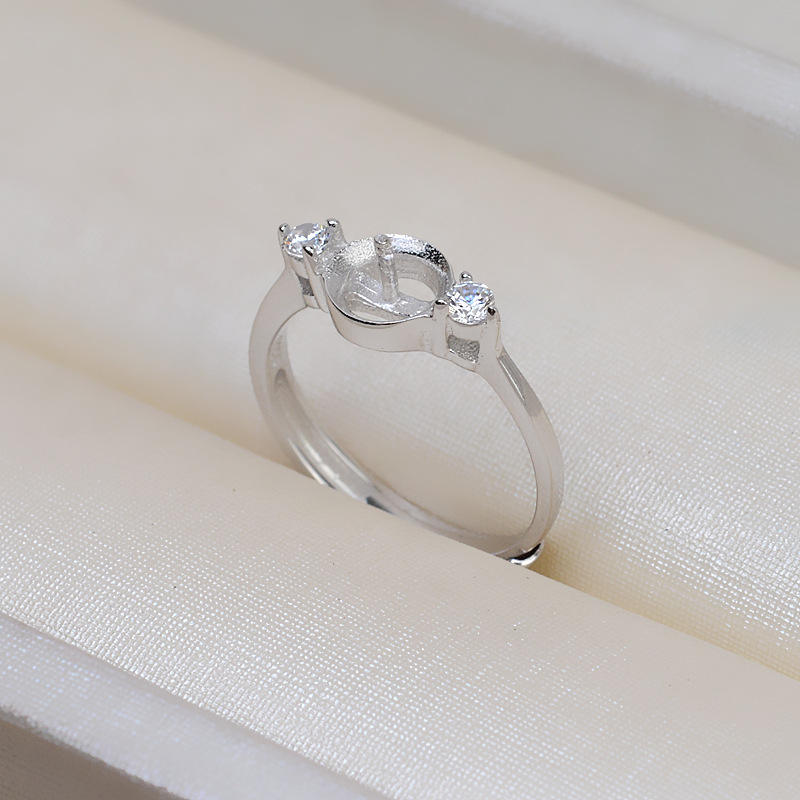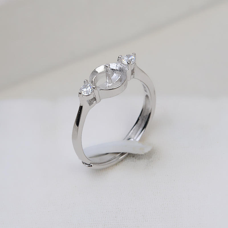 แหวนเงินแท้ S925 แบบเปิดสำหรับผู้หญิง ปรับขนาดได้ 8-9 มม. สำหรับใส่ไข่มุก DIY พร้อมถาดเปล่า อุปกรณ์ทำเครื่องประดับ 156