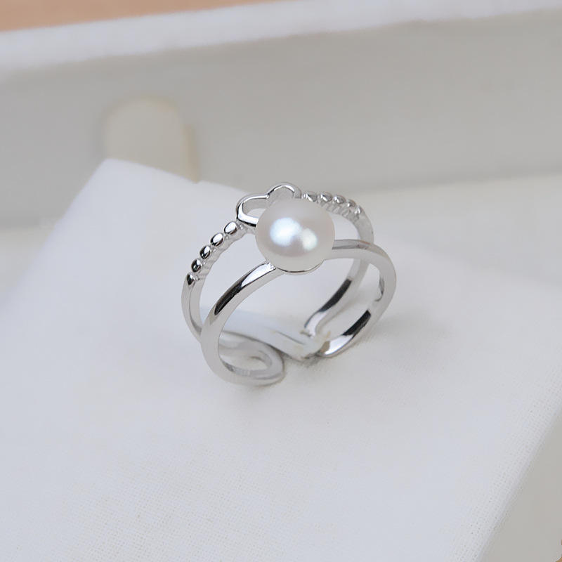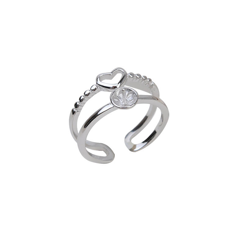 แหวนเงินแท้ S925 แบบเปิด รูปหัวใจเล็ก ปรับขนาดได้ สำหรับใส่ไข่มุก DIY ขนาด 6-7 อะไหล่เครื่องประดับ 223-อุปกรณ์และส่วนประกอบเครื่องประดับ