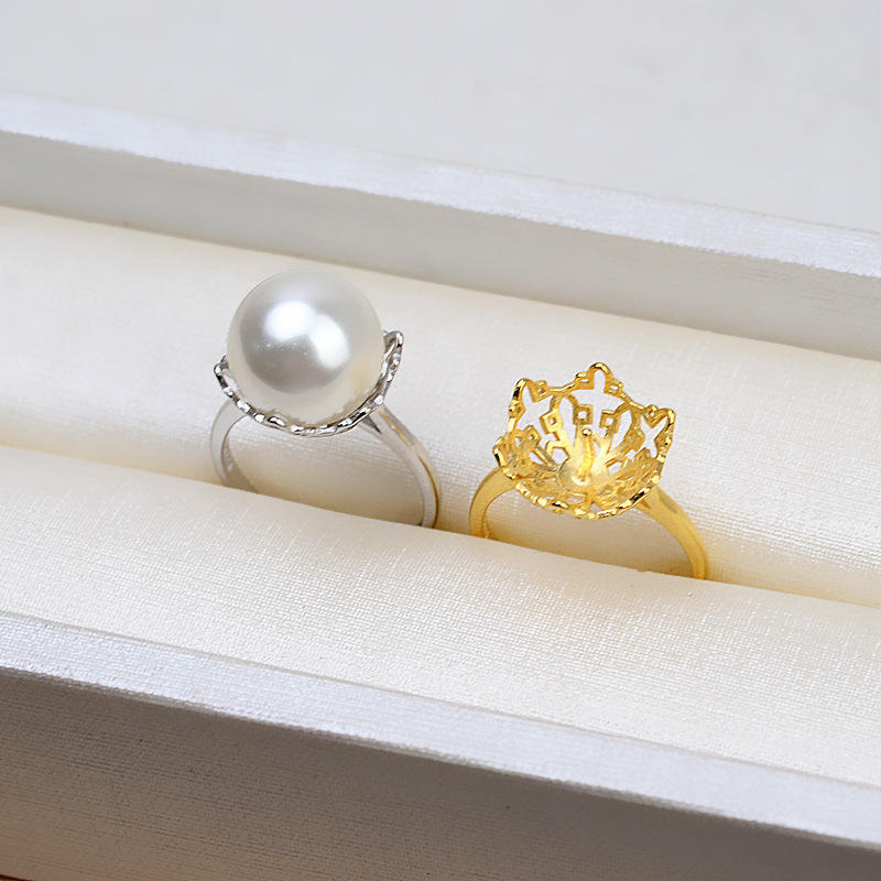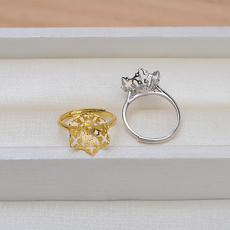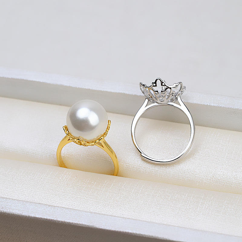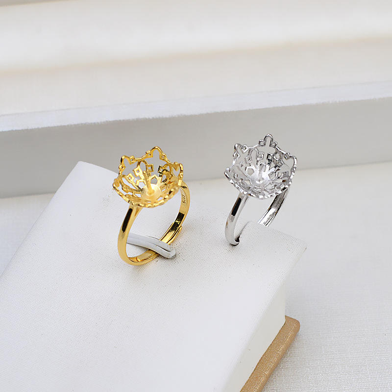 แหวนเงินแท้ S925 แบบเปิด ปรับขนาดได้ 10-11 มม. สำหรับใส่ไข่มุก DIY ขนาด 6 มม.-20 มม. รุ่น 1447 อุปกรณ์ทำเครื่องประดับ พร้อมห่วงเชื่อม