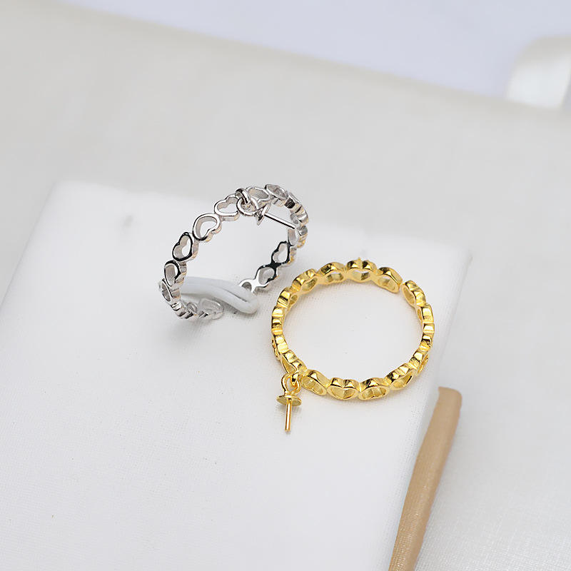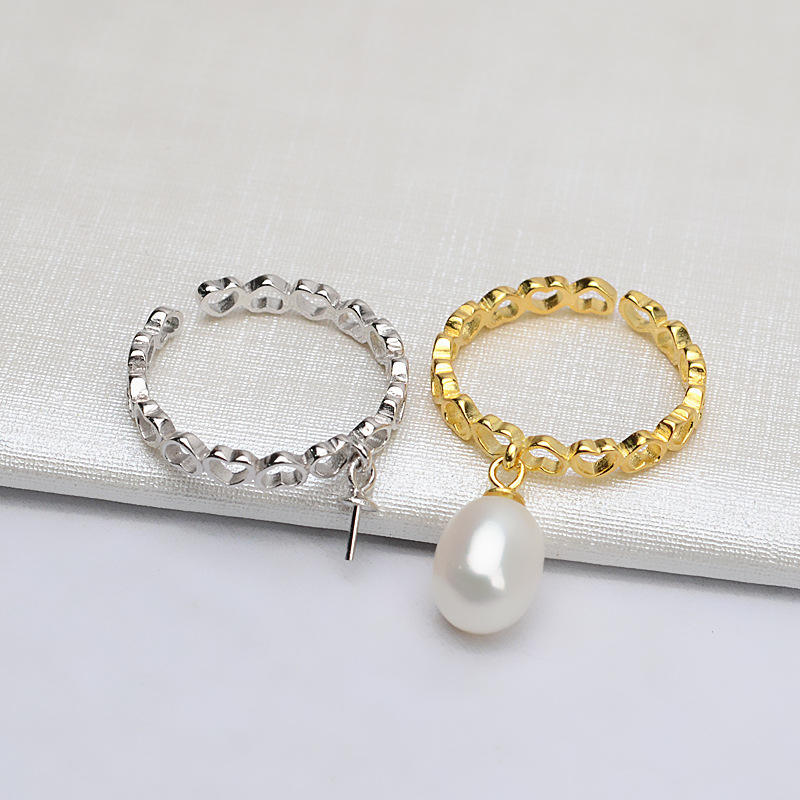 แหวนเงินแท้ S925 สำหรับผู้หญิง แหวนรูปหัวใจแบบเปิด ใส่ไข่มุกได้ ขนาด 5-8 มม. สำหรับทำเครื่องประดับ DIY