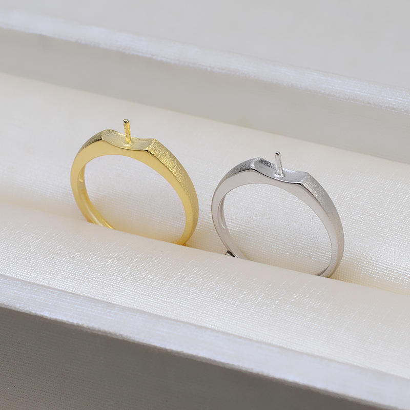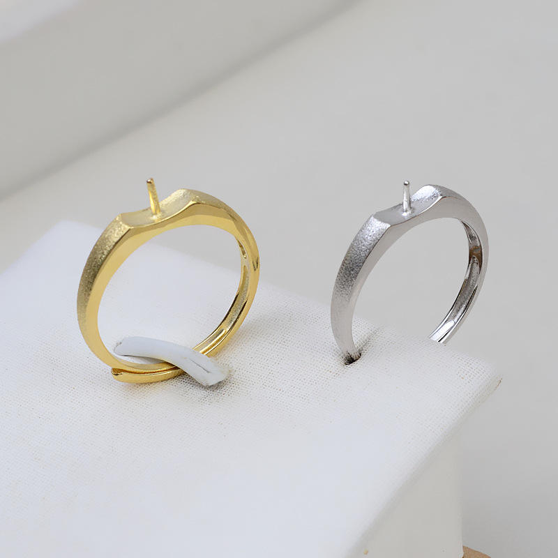 แหวนเงินแท้ S925 แบบเปิดสำหรับผู้หญิง ปรับขนาดได้ 10-13 พร้อมที่ใส่ไข่มุกแบบกลวง ผิวด้าน รุ่นปรับปรุงใหม่ 757 อะไหล่เครื่องประดับกึ่งสำเร็จรูป