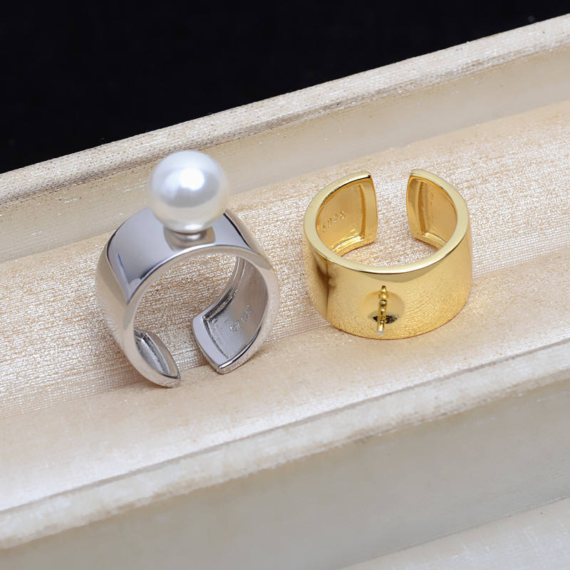 แหวนเงินแท้ S925 แบบเปิด ปรับขนาดได้ 9-12 นิ้ว 5322 พร้อมอุปกรณ์ตกแต่งมุก ตัวเรือนเปล่า สำหรับทำเครื่องประดับ