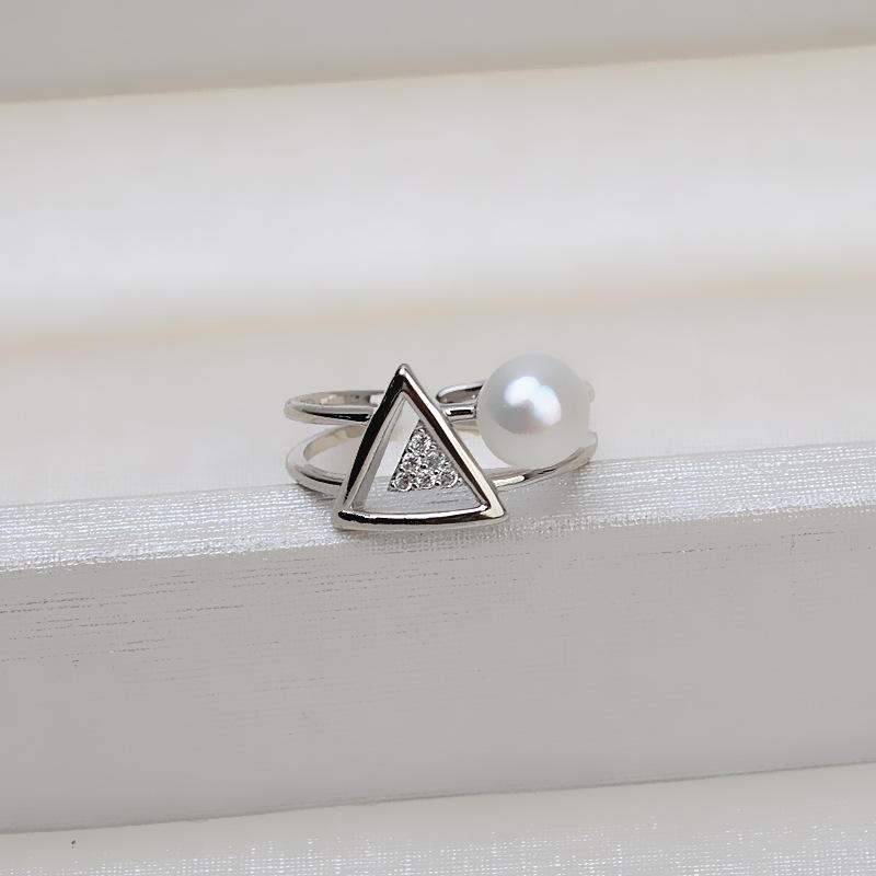 แหวนเงินแท้ S925 ทรงสามเหลี่ยมเจียระไนแบบเปิด ประดับมุก Living Hair ขนาด 7-8 มม. ดีไซน์ทันสมัย แบบกลวง สำหรับงาน DIY อุปกรณ์กึ่งสำเร็จรูป 1456