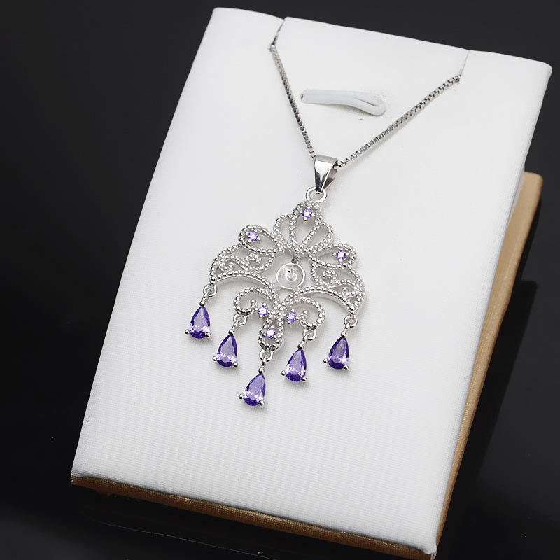 สร้อยคอเงินแท้ S925 สไตล์วินเทจ พร้อมจี้ลูกปัดมุก 6-7 มม. แบบกึ่งสำเร็จรูป สำหรับผู้หญิง พร้อมลูกไม้ประดับ รุ่น-797