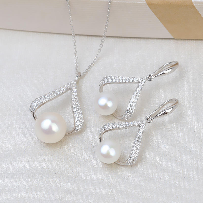 ชุดจี้ไข่มุกเงินแท้ S925 สไตล์วินเทจ สำหรับผู้หญิง พร้อมสร้อยคอ ต่างหู และถาดเปล่า รุ่น 1858 เครื่องประดับแฟชั่นสำหรับผู้หญิง