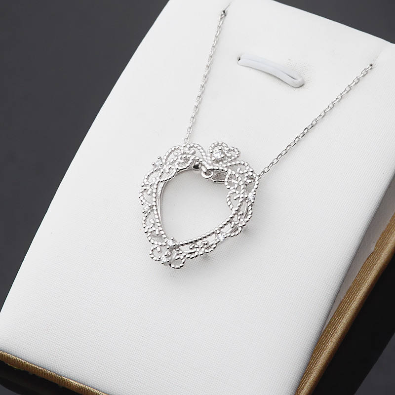 S925 Silver Peach Heart Lace Pendant Necklace for Women 8-9 Pearl Empty Holder Chain Accessory DIY Fashion Pendants & Charms 339