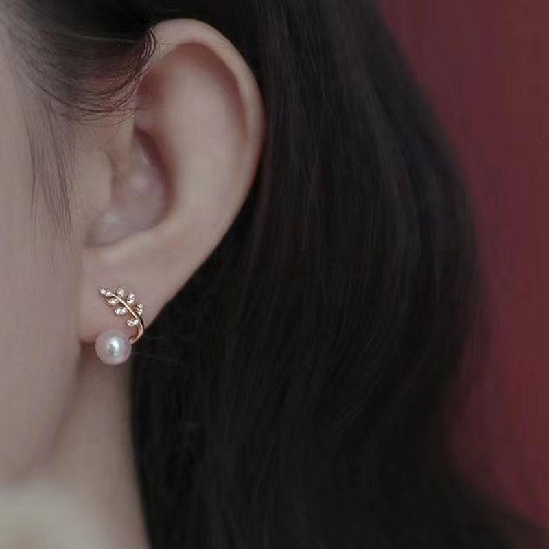 อุปกรณ์ทำต่างหูเงินแท้ S925 ประดับมุก พร้อมลูกปัดกลมขนาด 7-8 มม. 20914 ถาดเปล่ารูปใบไม้สำหรับทำเครื่องประดับเงิน